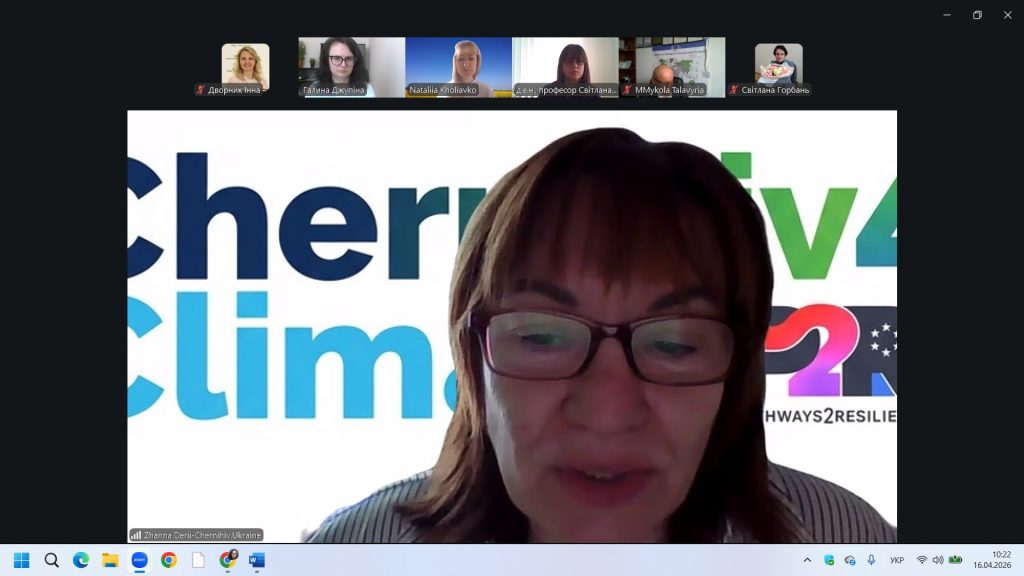 Під час виступу було презентовано міжнародний проєкт Chernihiv4Climate “Чернігів за кліматичні дії та сталу трансформацію”, спрямований на підтримку кліматичної адаптації, підвищення стійкості громад та впровадження інноваційних підходів до сталого розвитку. Особливу увагу приділено ролі університетів у формуванні кліматично відповідальної політики, розвитку партнерств та інтеграції європейських практик у процеси відновлення України.