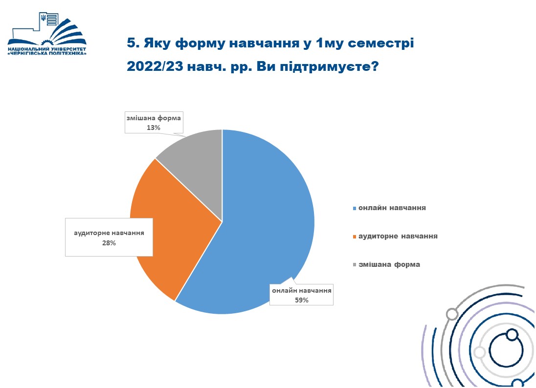 За результатами опитування серед здобувачів вищої освіти щодо форми організації ОП у І семестрі 2022-2023 н.р. отримано наступні результати: