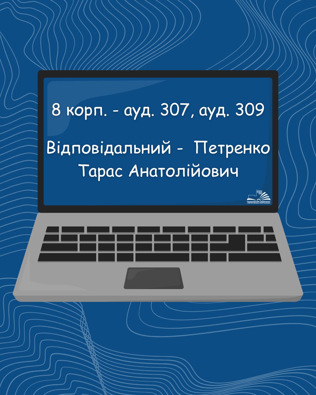 8 корпус – ауд. 307, ауд. 309 (відповідальний: Петренко Тарас Анатолійович)