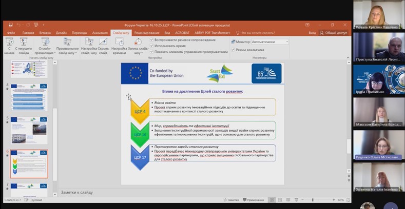 16 жовтня 2025 року в онлайн-форматі відбувся Форум «Вища освіта для сталого розвитку України: проблеми та перспективи у повоєнний період», організований Національним університетом «Чернігівська політехніка» в межах відзначення ErasmusDays 2025 в Україні та приурочений до Дня сталого розвитку. Захід був спрямований на дисемінацію результатів міжнародних проєктів університету, обговорення актуальних викликів системи вищої освіти в умовах відбудови України та налагодження нових форматів міжнародної співпраці у сфері сталого розвитку