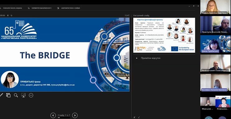 У межах програми Форуму з презентацією проєкту The Bridge «Подолання розриву між університетом і промисловістю: інноваційна магістерська навчальна програма, що підтримує розвиток зелених робочих місць і цифрових навичок в українському будівельному секторі» виступила координаторка від НУ «Чернігівська політехніка» Ірина Прибитько.