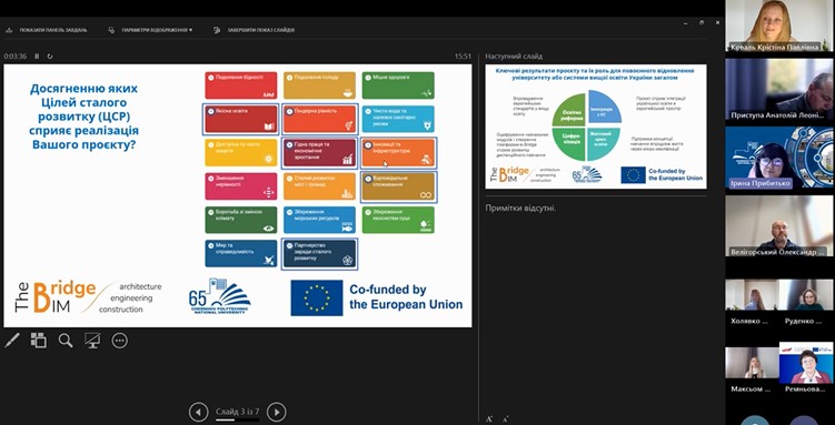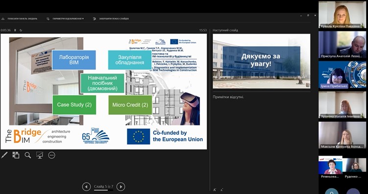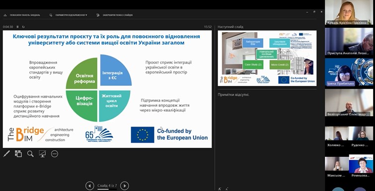 - – продемонструвала ключові результати реалізації проєкту, серед яких розробка магістерських програм із BIM-технологій, створення BIM-центрів, спільне видання навчальних матеріалів та ін.;