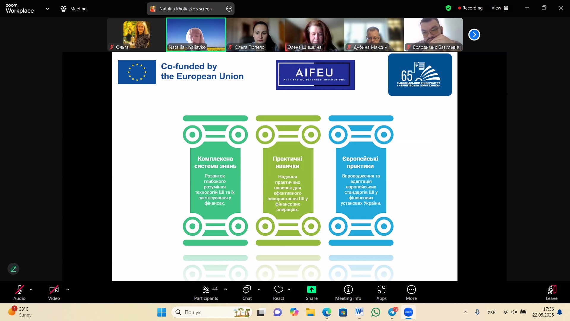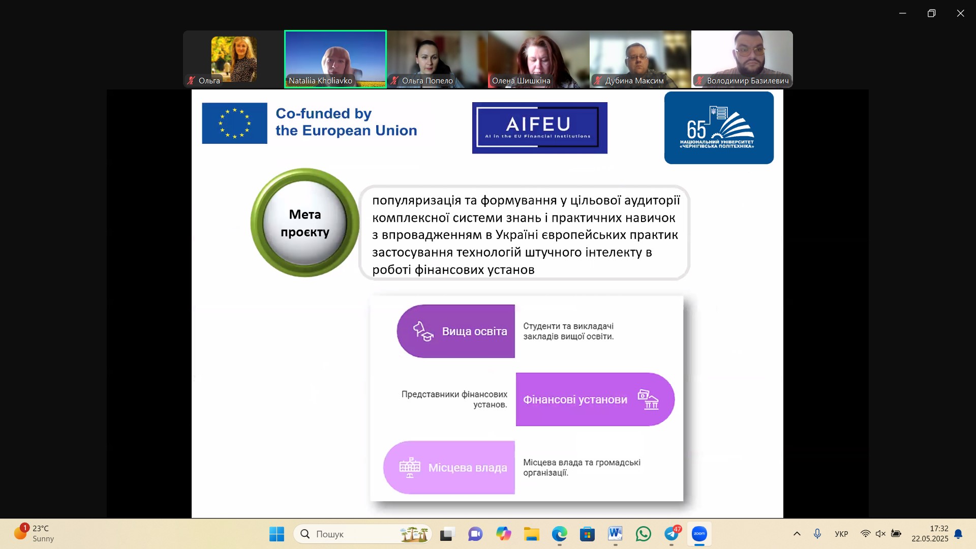 22 травня 2025 року відбувся колоквіум “Нові ідеї: студентські аналітичні проєкти з ШІ у фінансах”, що реалізовано у рамках проєкту ERASMUS+ KA2 JEAN MONNET MODULE «Штучний інтелект у фінансових установах ЄС». Метою заходу була презентація аналітичних проєктів здобувачів вищої освіти перед зовнішніми стейкхолдерами. Участь у колоквіумі взяли більше 40 осіб, серед яких у тому числі – фахівці з фінансів, цифрових технологій, аналітики, підприємці та науково-педагогічні працівники.