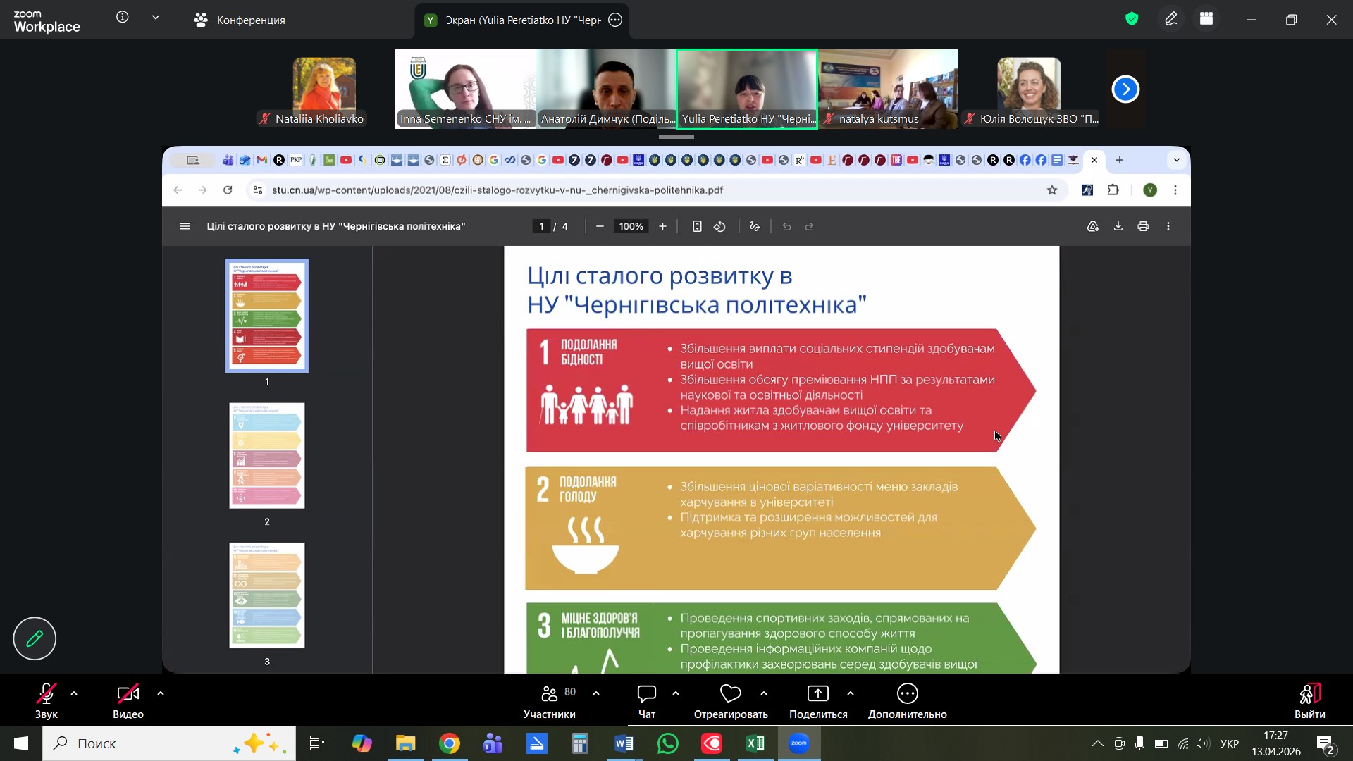 13 квітня 2026 року розпочався п’ятиденний тренінг «АБВ сталого розвитку та як напрацювати компетентності зі сталого менеджменту?», який реалізується в межах проєкту ERASMUS+ КА2 SUSTED «Освіта для сталого розвитку: синергія компетенцій для відновлення України». Тренінг спрямований на впровадження Цілей сталого розвитку (ЦСР) у діяльність закладів вищої освіти України. До участі у тренінговій програмі долучилося більше 100 учасників.