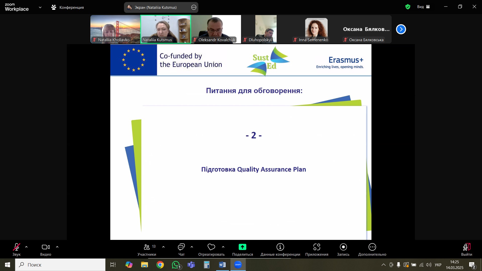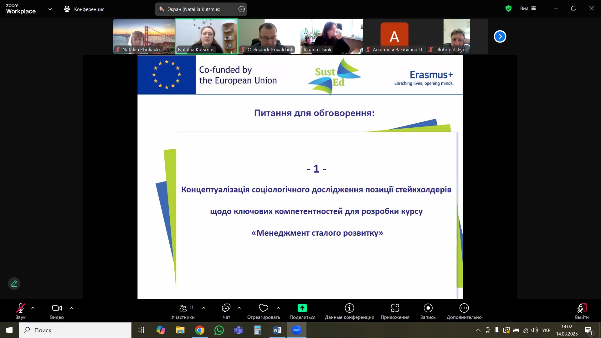14 березня 2025 року професори НУ «Чернігівська політехніка» О.М. Руденко, Н.І. Холявко та О.В. Попело взяли участь у черговій онлайн-зустрічі з партнерами проєкту SUSTED «Освіта для сталого розвитку: синергія компетенцій для відновлення України».