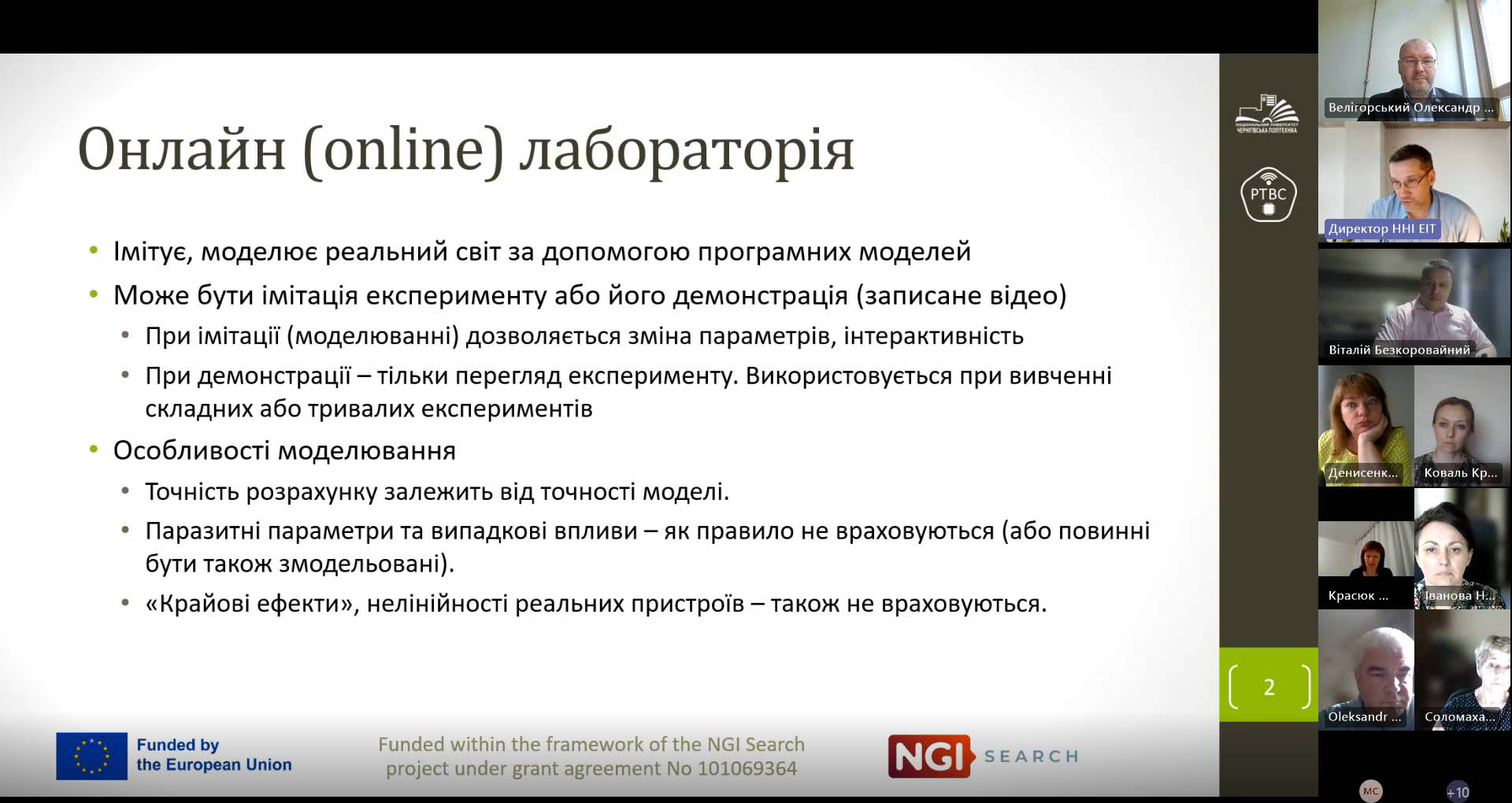 Членам технічного комітету проєкту DEFEP корисною була інформація, яку виклав у своїй доповіді “Загальна організація дистанційних лабораторій. Загальна інформація про можливості RLMS LabDiscoveryEngine – середовища керування дистанційними лабораторіями” к.т.н., доц., завідувач кафедри радіотехнічних та вбудованих систем НУ «Чернігівська політехніка» Олександр Велігорський.
