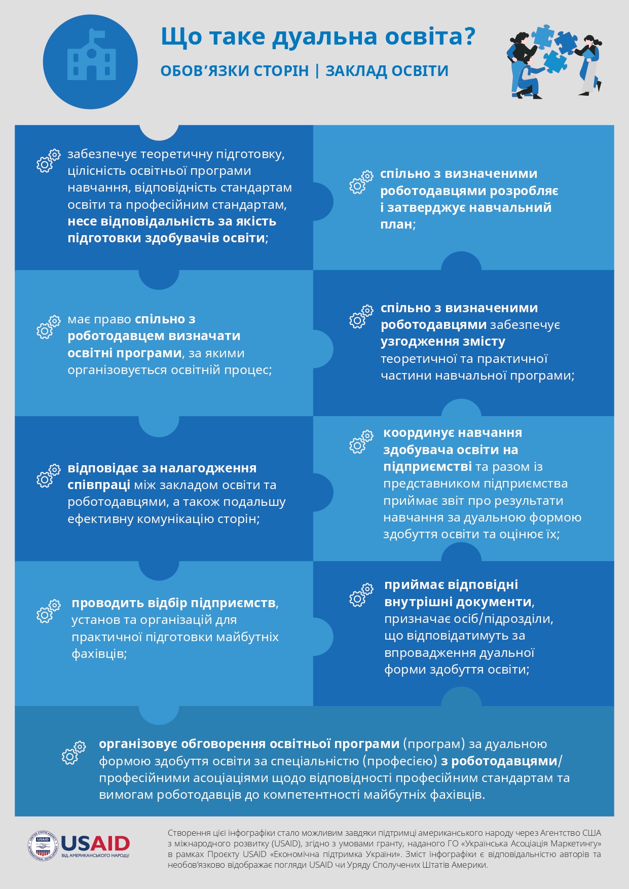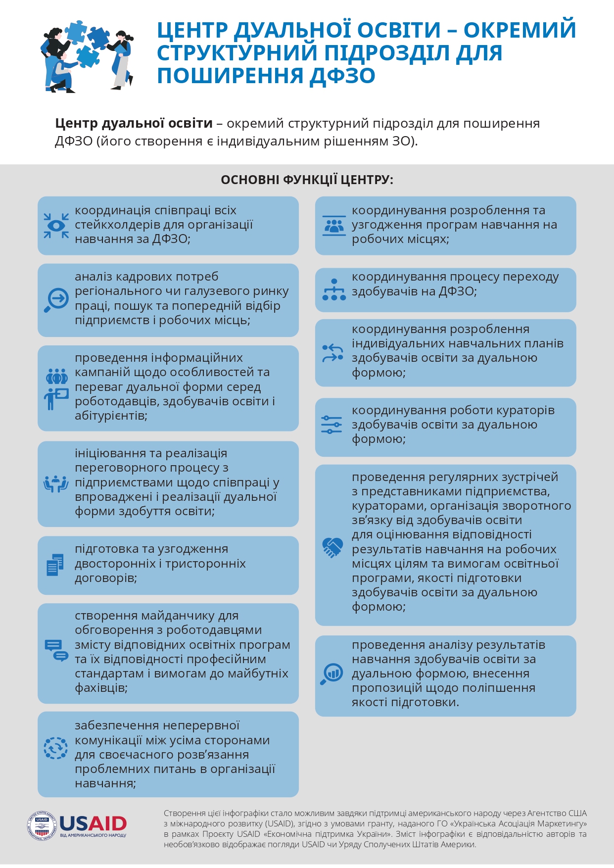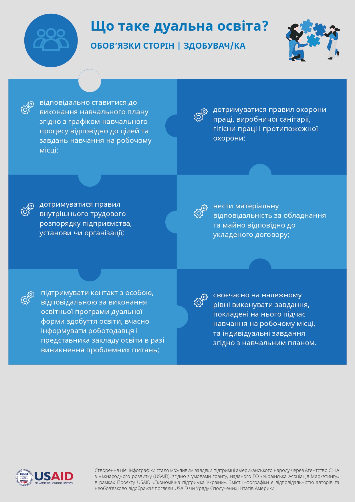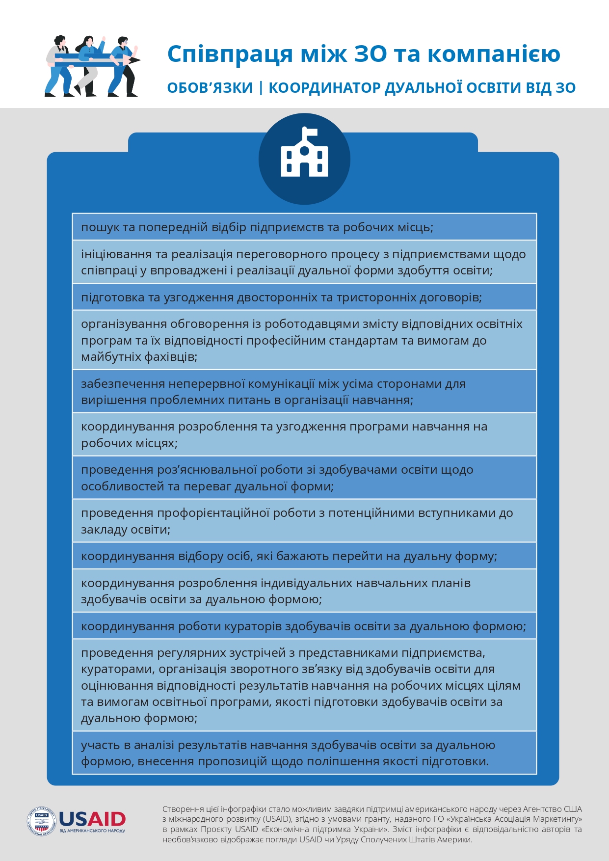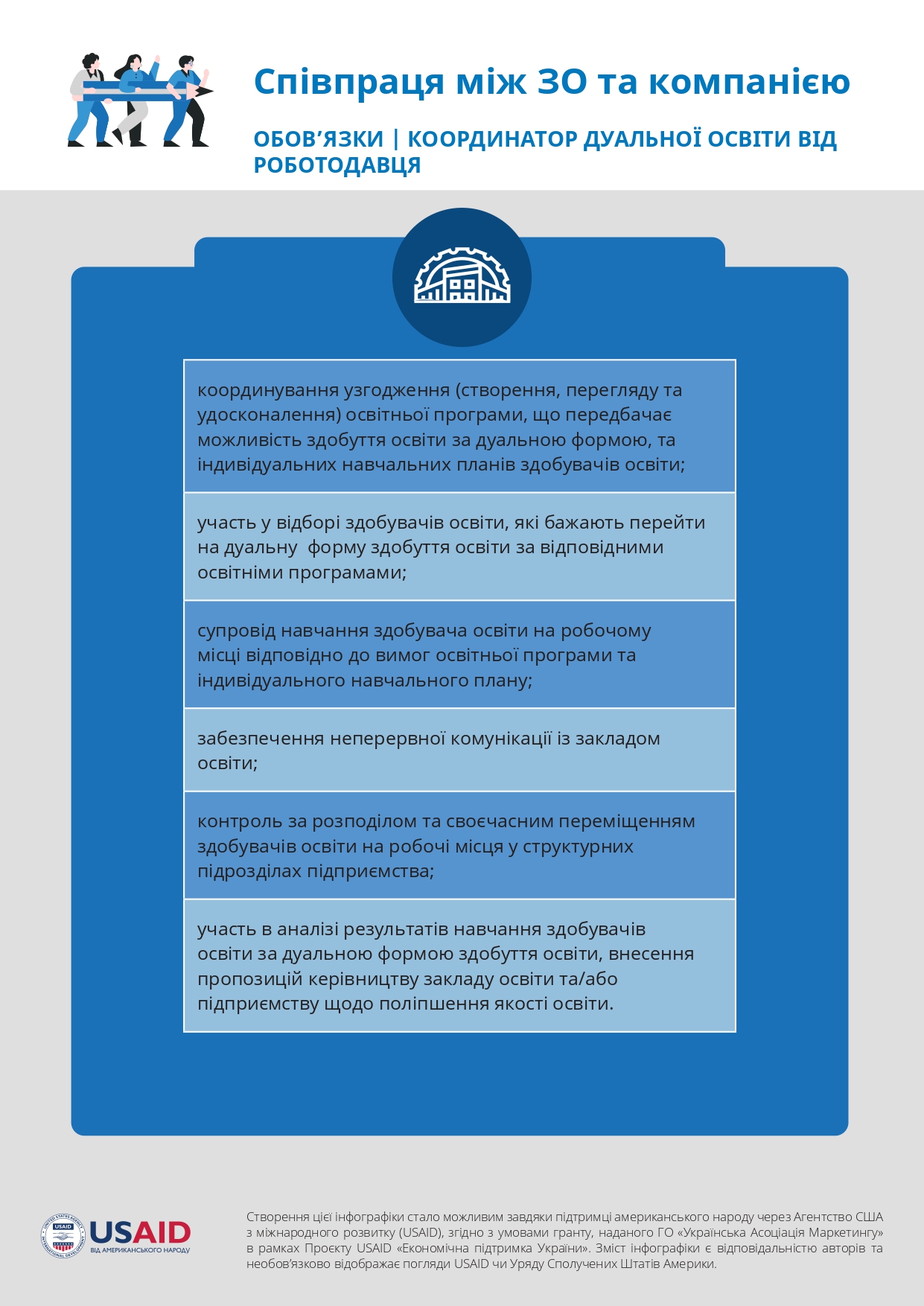 The creation of this information page was made possible thanks to the support of the American people, provided through the United States Agency for International Development (USAID), in accordance with the terms of the grant provided by the NGO “Ukrainian Marketing Association” within the framework of the USAID Project “Economic Support of Ukraine”. The content of the publications is the responsibility of the university and does not necessarily reflect the views of USAID or the United States Government.
