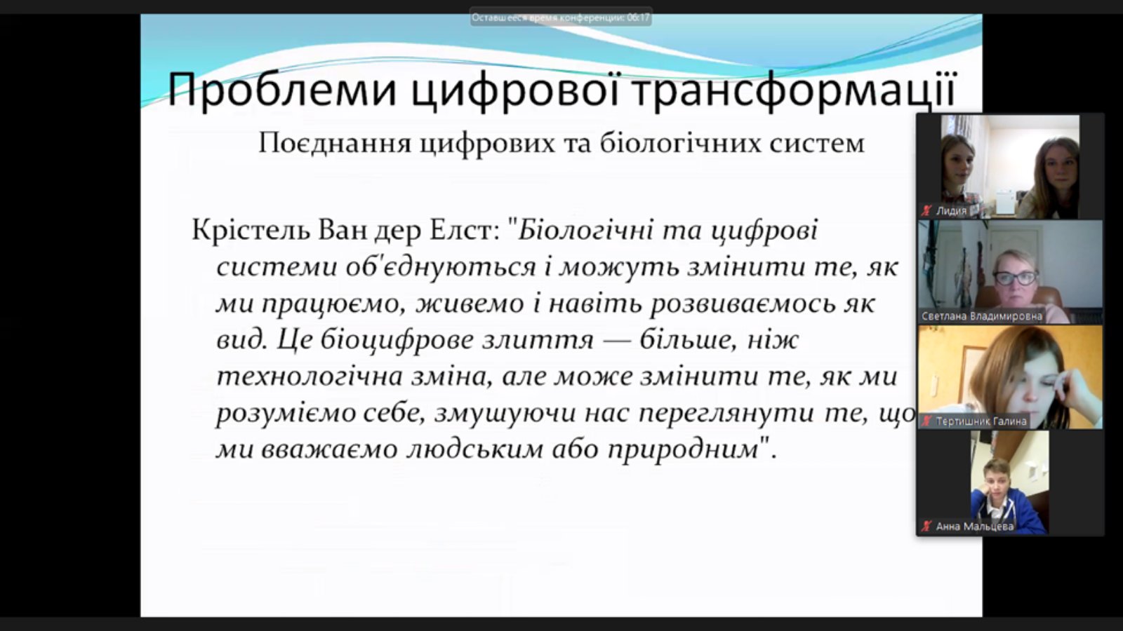 Substantive reports of graduate students, undergraduates, bachelors (set out in the program) clearly confirmed the expectations of the organizers outlined for the purpose of the meeting: the development of scientific and creative potential of higher education, discussion of current civilizational problems, establishing communicative culture, knowledge. Therefore, we can thank our younger colleagues, the unconditional intellectual elite of the university, for interesting reports, and express confidence in further fruitful cooperation, based on the constructive interest of philosophy in specific sciences and vice versa through complementary methodological and empirical components.