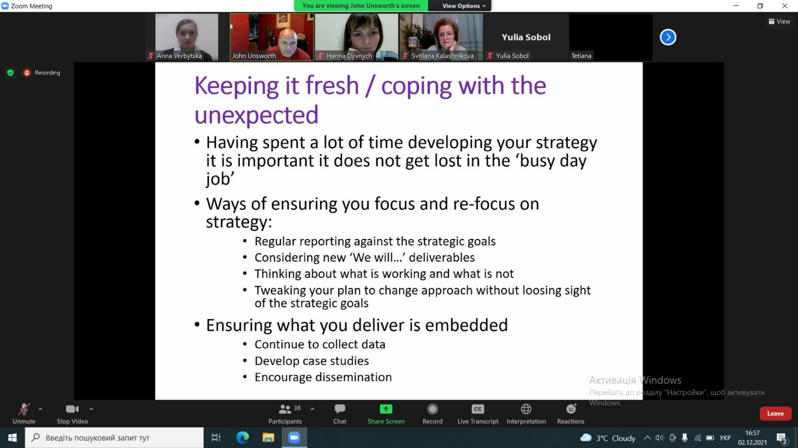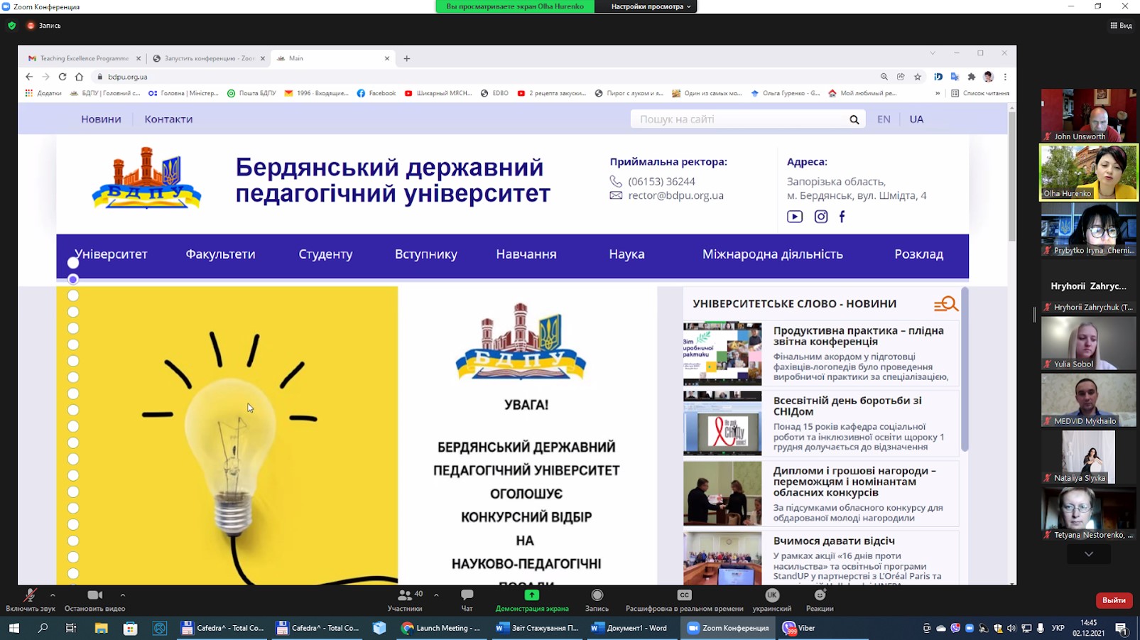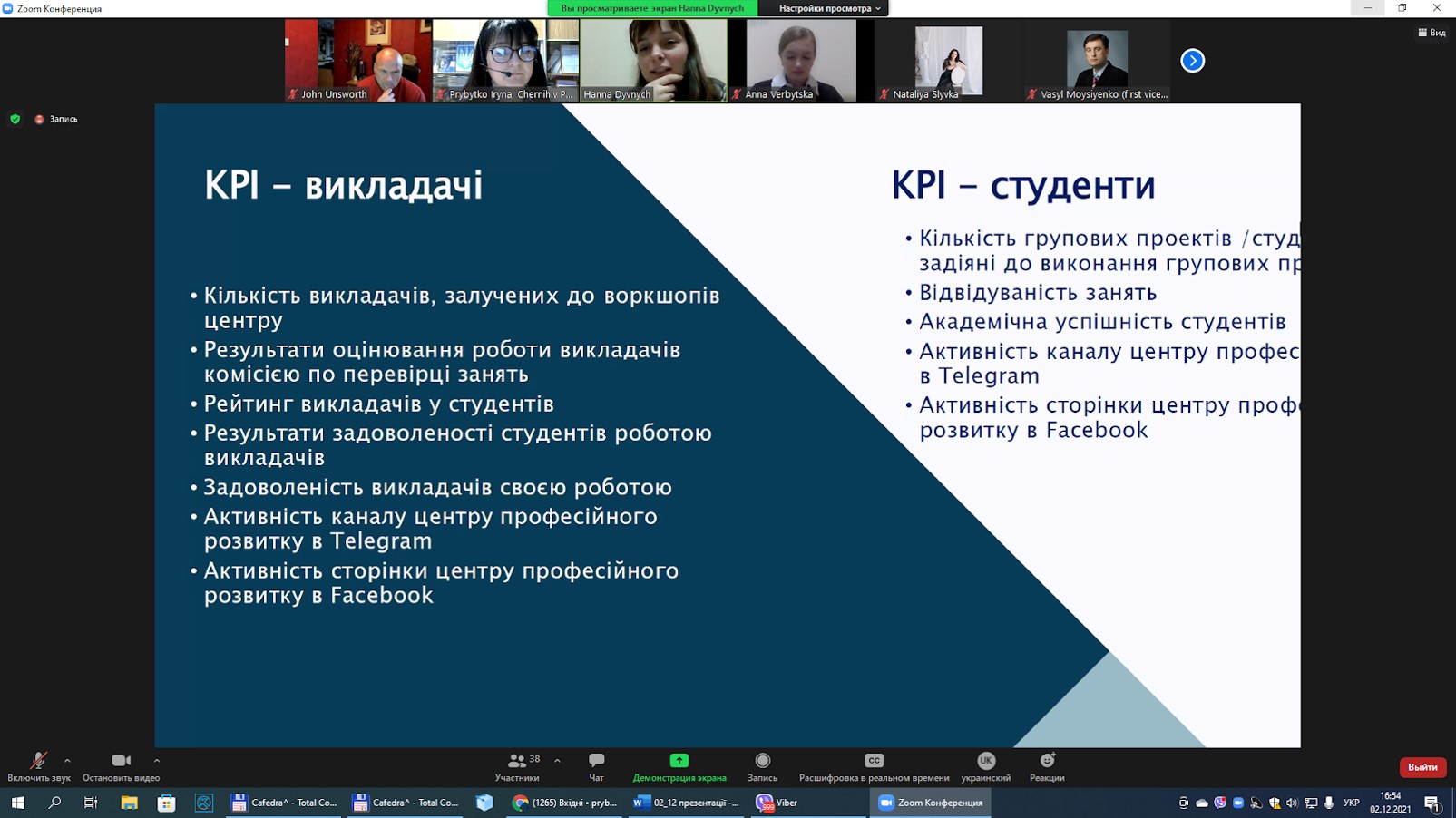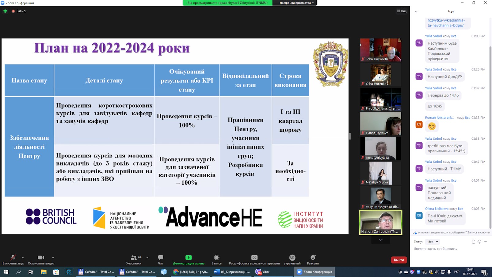On December 2, 2021, the last meeting of the component for managers of the Teaching Improvement Program from the British Council in Ukraine took place. Together with other universities involved in the program, the Chernihiv Polytechnic National University team presented its strategy for establishing its own Center for Teaching Skills and received feedback from colleagues and a visiting expert from the UK.