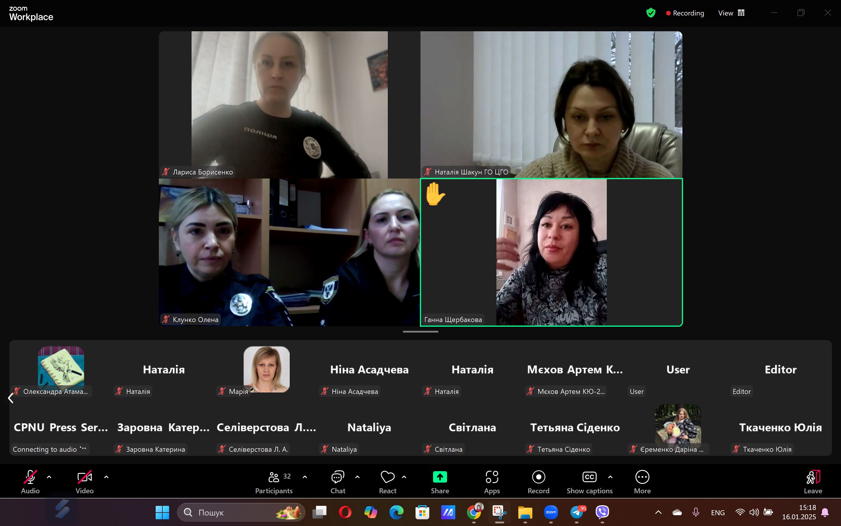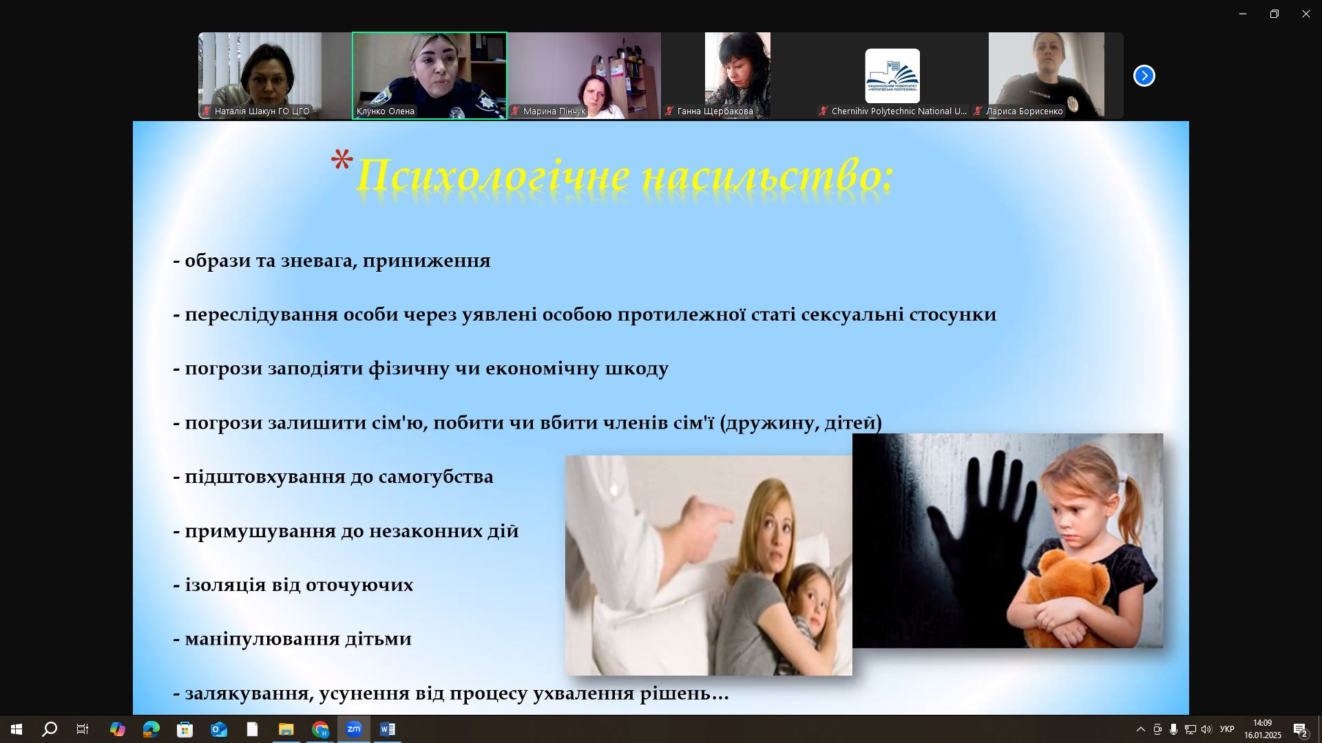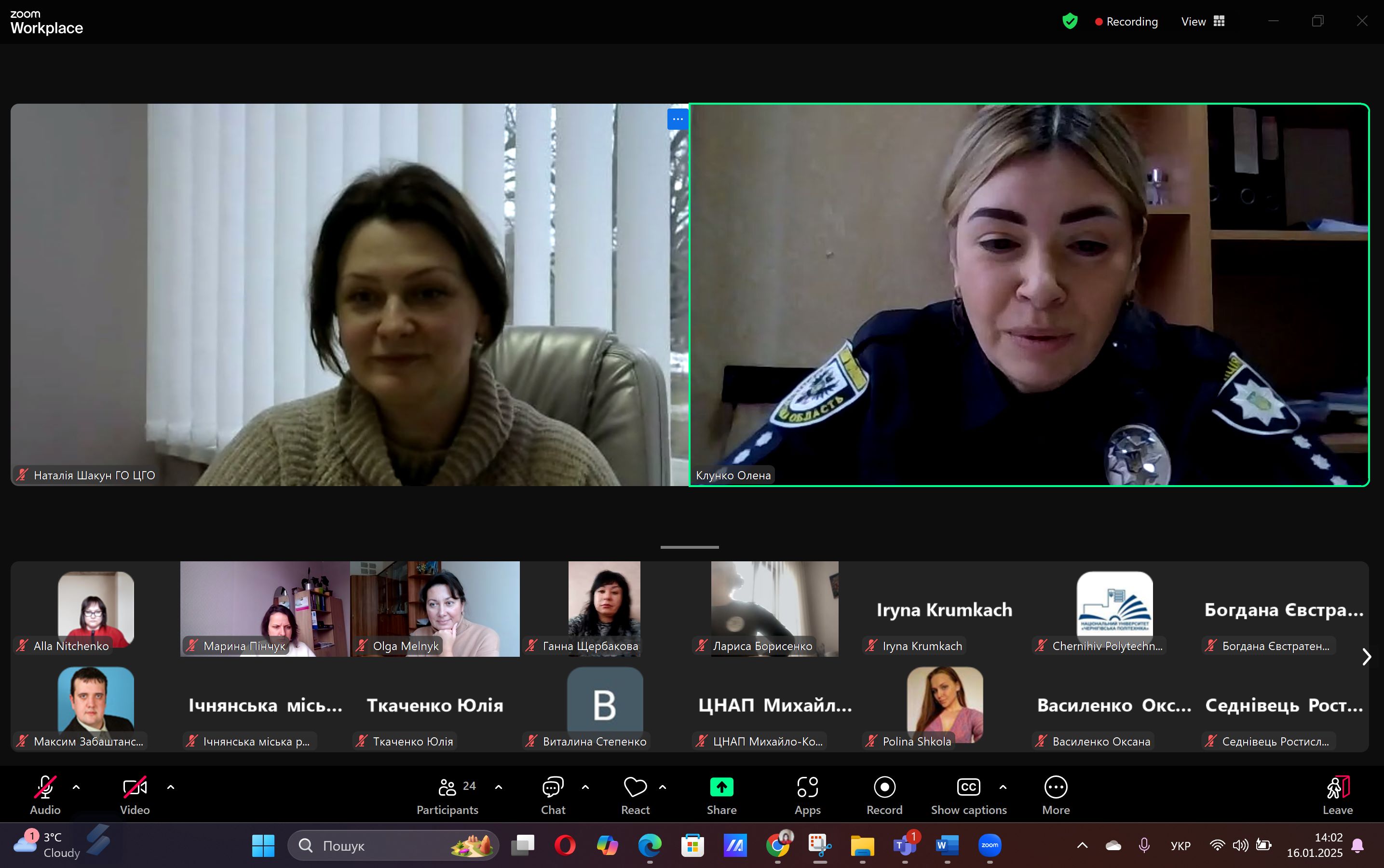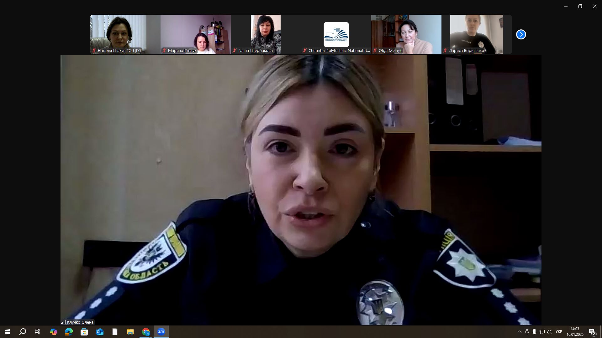 On 16 January 2025, a webinar was held on “Combating violence against women and domestic violence”. The speaker of the event, Olena Klunko, Head of the Human Rights Sector of the Chernihiv District Police Department, spoke about the key mechanisms for protecting women survivors of violence and the importance of integrating a gender-sensitive approach into the activities of law enforcement agencies.
