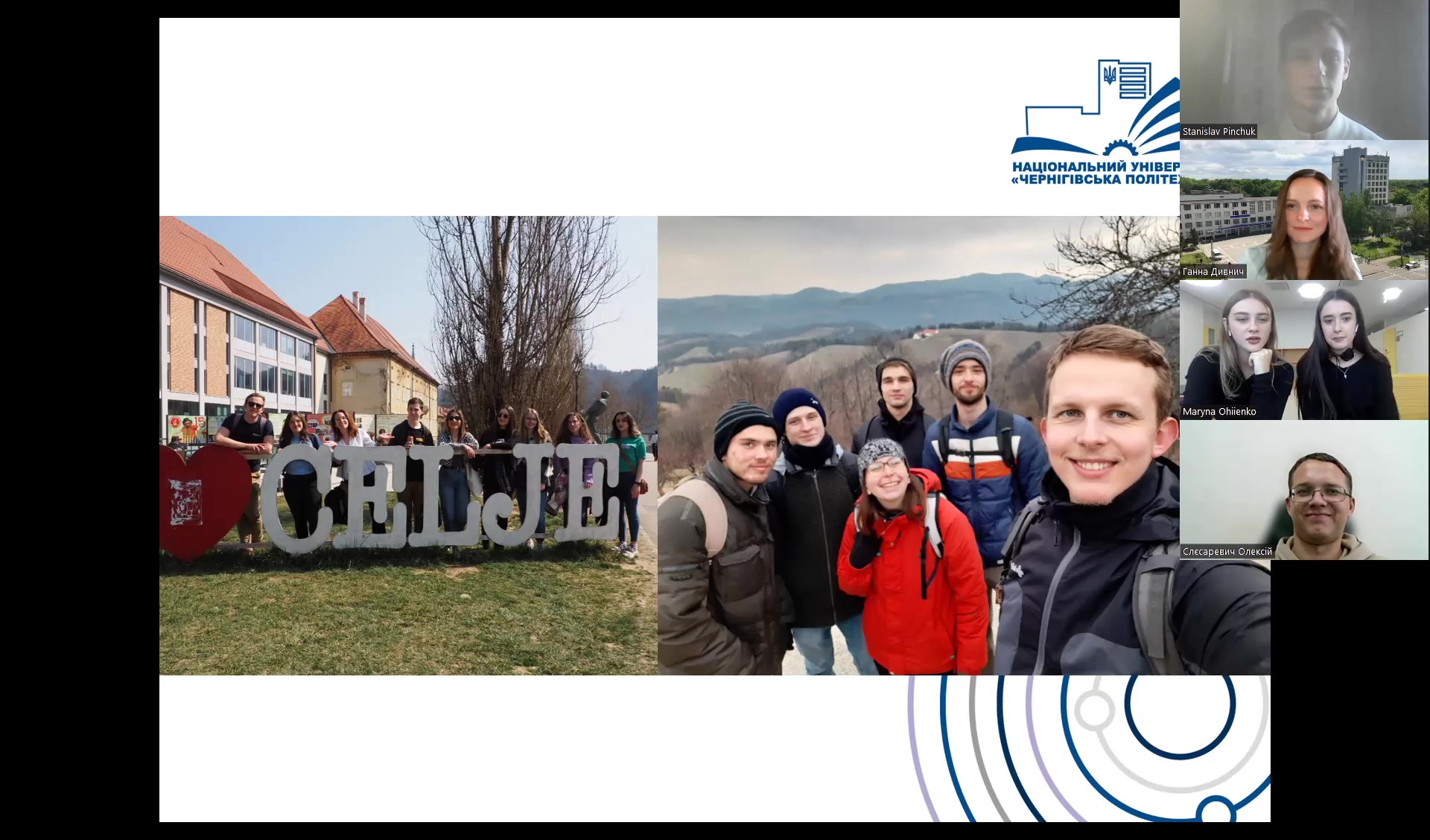 The online meeting was devoted to the experience of participation of higher education applicants of Chernihiv Polytechnic National University in the Erasmus KA1 academic mobility program. Features of registration and training in partner institutions of our university in Latvia, Austria, Slovenia and Spain were presented.