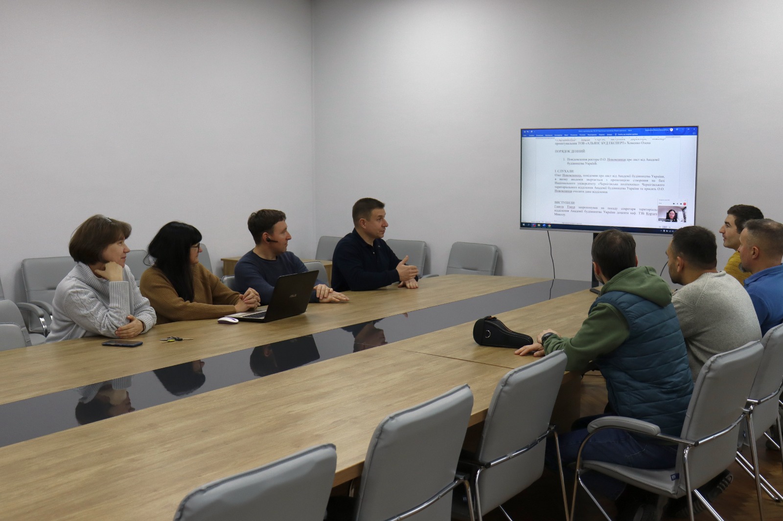 It was decided to support the proposal to establish the Chernihiv Territorial Branch of the Academy of Construction of Ukraine on the basis of the Chernihiv Polytechnic National University, to recommend the Rector of the Chernihiv Polytechnic National University Oleh Novomlynets as the Head of the Branch, and to recommend Mykola Korzachenko, Associate Professor of the Department of Welding and Construction Technologies, as the Secretary.