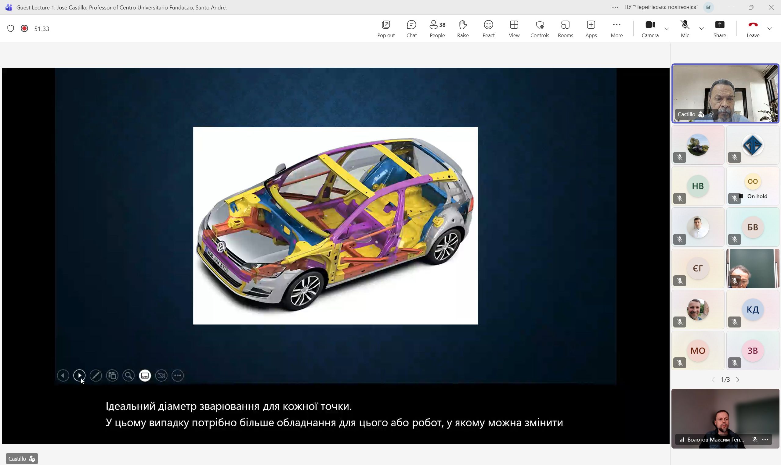 On March 26, 2026, the Department of Welding and Construction Technologies hosted an online guest lecture on the topic: “Resistance Welding: Core Process for Automotive Production” by Professor Jose Castillo of the University of São Paulo (Brazil).
