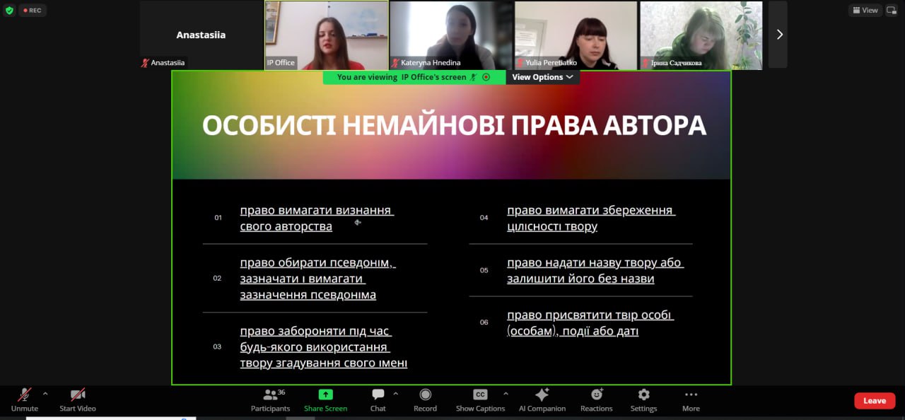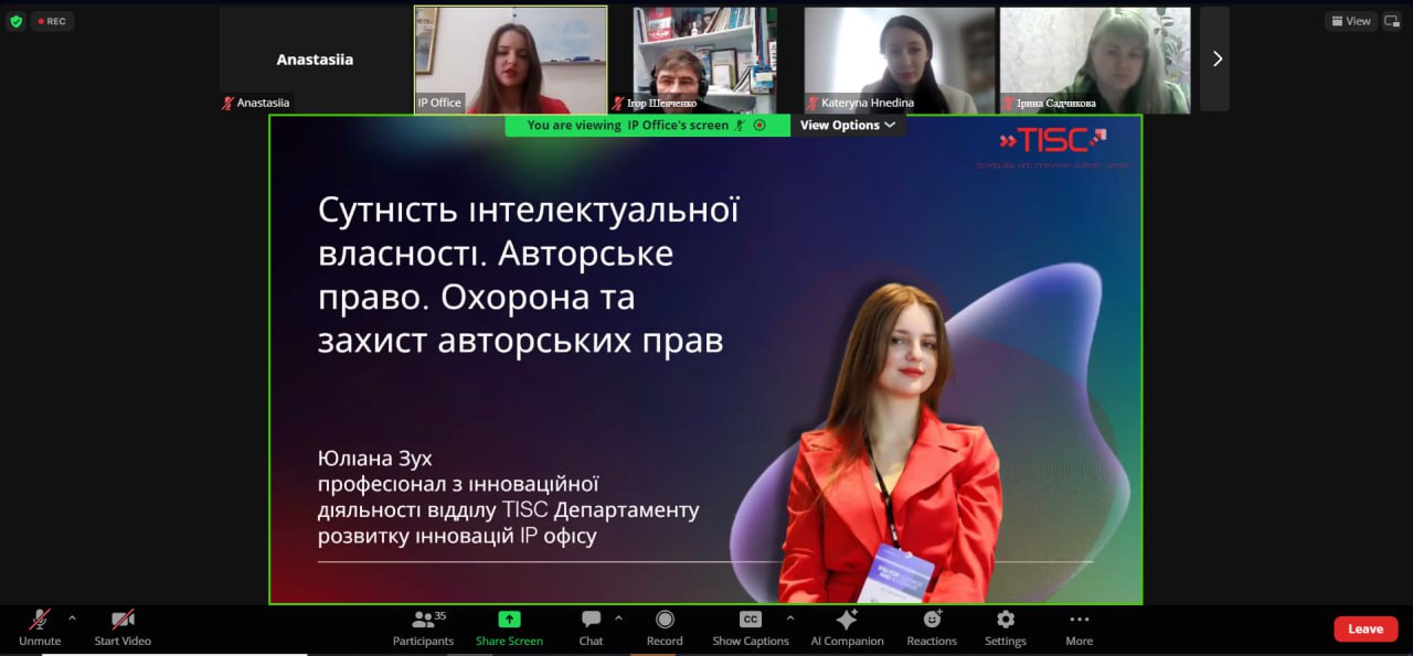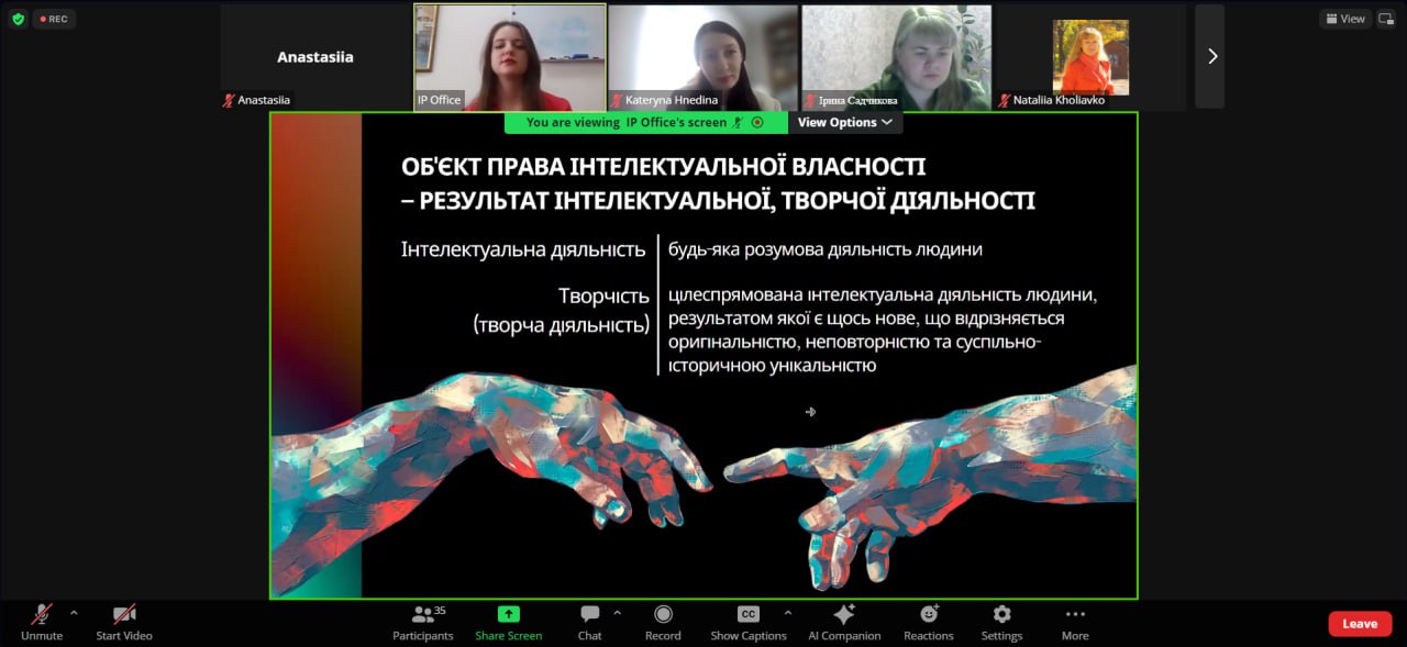 During the webinar, participants learned from Yuliana Zukh about intellectual property and copyright, protection and protection of copyright. Ihor Shevchenko talked about the practical aspects of registering intellectual property objects and shared interesting patent cases.