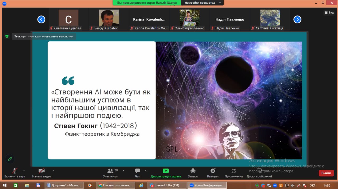 Scientific and pedagogical staff of the Department of Philosophy and Social Sciences of Chernihiv Polytechnic National University took part in the event, held in a mixed format: head. Department Associate Professor Nataliya Shakun spoke at the plenary session with the report “Transformation of Educational Practices in the Age of Artificial Intelligence”, in the sectional meetings the Vice-Rector for Scientific and Pedagogical Work and Social Development of Chernihiv Polytechnic University, Associate Professor Olga Melnyk and Associate Professor Hanna Chepurna (Department of Psychology and Creative industry) presented research on the topic “Practices of community cohesion in conditions of war: gender aspect”, associate professor Oleksiy Kolyevatov – “Financing of military settlements in Ukraine in the first third of the 19th century.”, associate professor Svitlana Kiselytsia – “Unity of natural and humanitarian knowledge in personal development of scientists”.
