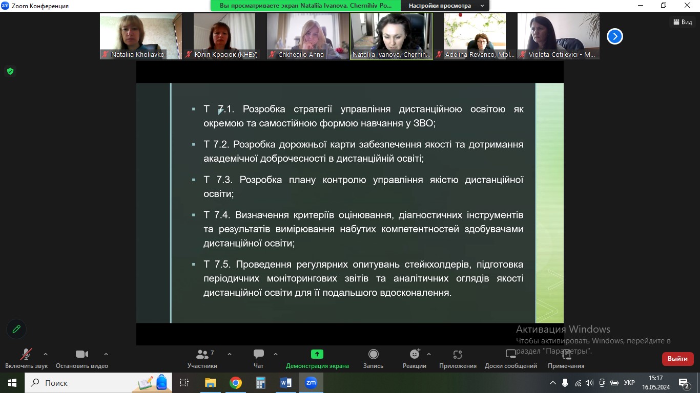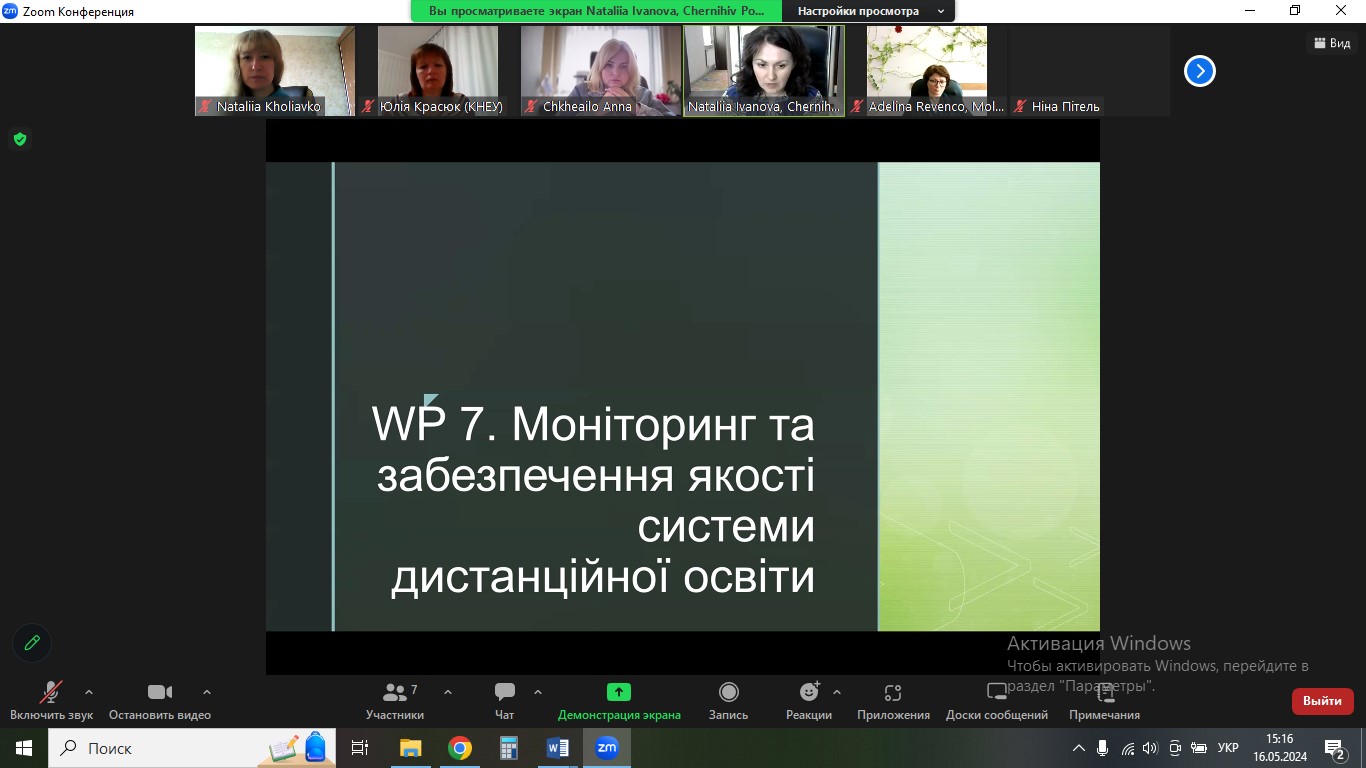 During the meeting, the members of the Committee analysed the results of the evaluation of the implementation of project result D 4.1 “Model package of regulatory documents: regulations, standards, instructions, guidelines for distance education”. In addition, they discussed the peculiarities of implementation and distribution of tasks within the work package WP7 “Monitoring and Quality Assurance of the Distance Education System” (lead beneficiary – National University “Chernihiv Polytechnic”).