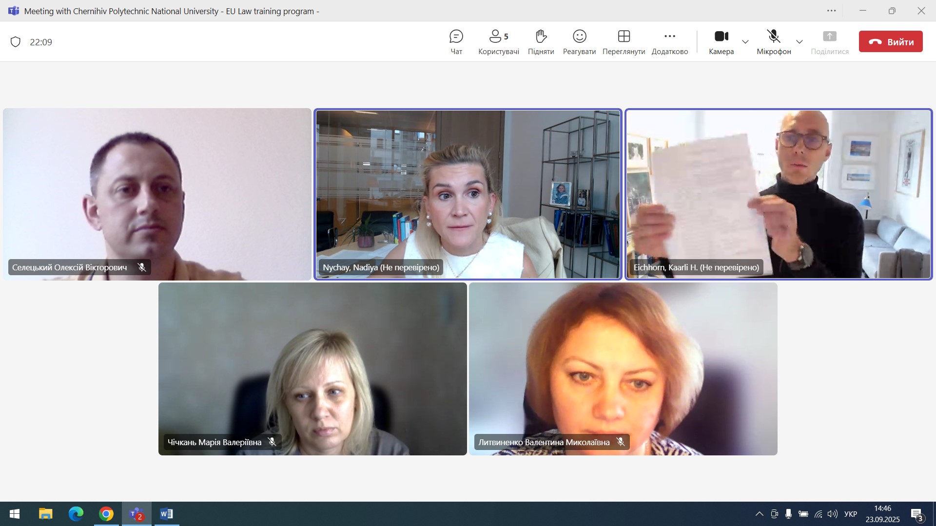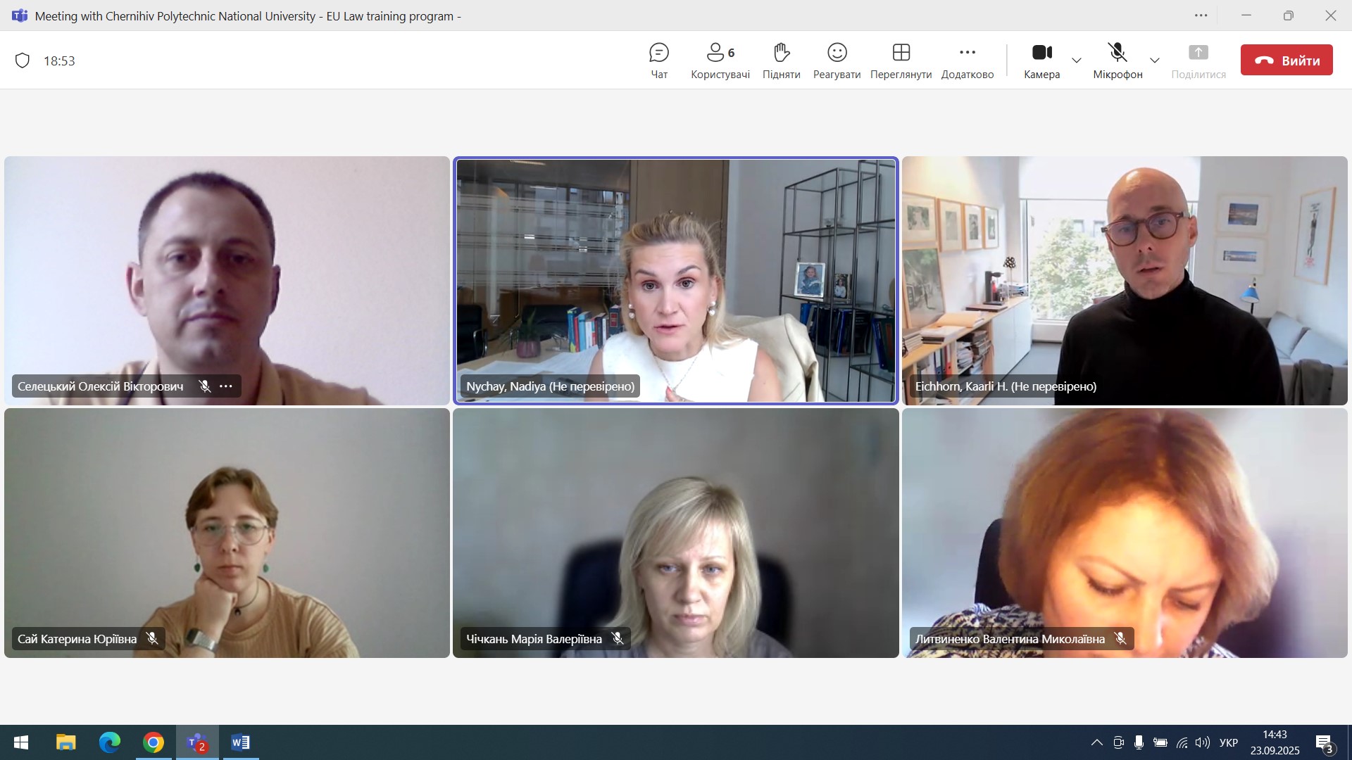 On September 23, 2025, an online meeting was held between representatives of the Faculty of Law of the Chernihiv Polytechnic National University – Dean of the Faculty Oleksiy Seletsky, Deputy Dean Valentyna Lytvynenko and Associate Professor of the Department of Public and Private Law Maria Chichkan – with representatives of the international law firm Jones Day.