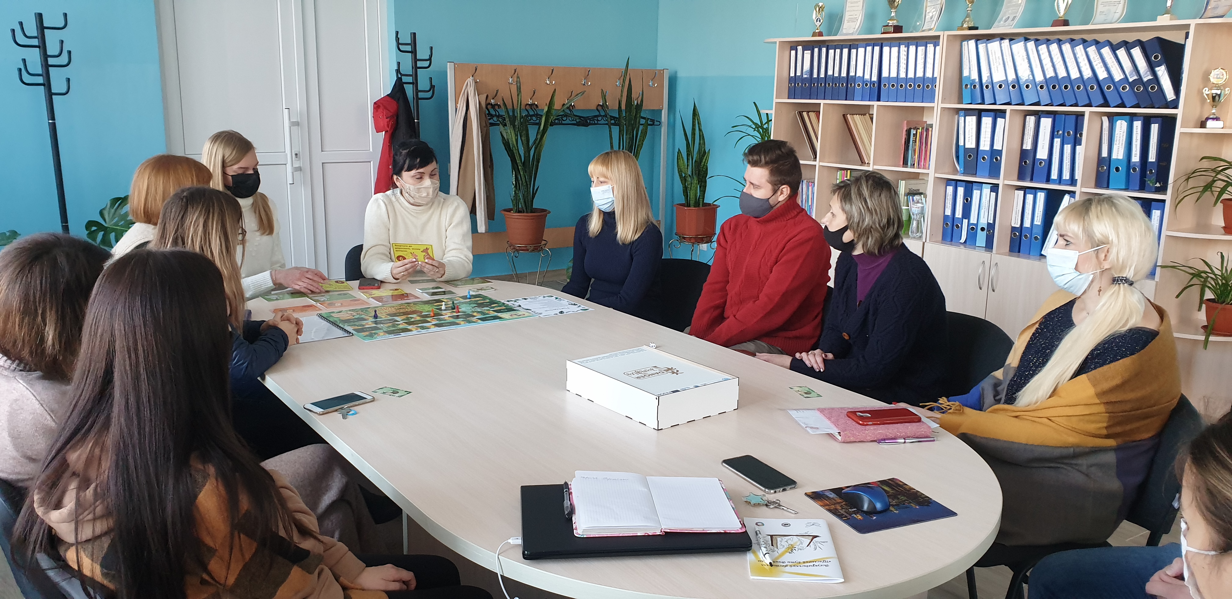 In November, project activities took place in educational institutions of territorial communities, in particular in Ripkynsky Support ZZSO, Koryukivska Secondary School I-III № 1, Gorodnyansky Lyceum № 2 and Bakhmatskaya Secondary School I-III grades. № 5. The project team (associate professors of the Department of Social Work TM Detsyuk, project coordinator, Zakharina MI, Maksom KV and Head of the Department of Marketing of PR-technologies and logistics Verbytska AV) conducted master classes to use the board game “Danger in Jungles” to prevent bullying in the school environment. Social educators and psychologists trained in the use of gamification prevention tools for bullying received certificates from project mentors and copies of a board game to implement prevention activities with students.