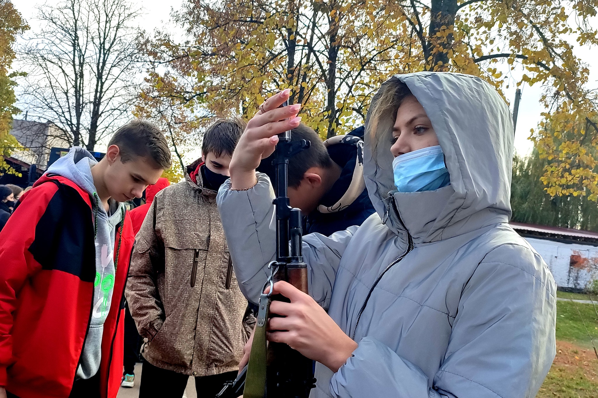 On the battlefield of the unit, the tourists were presented with training places in different directions. Combat training instructors demonstrated the weapons, special equipment and equipment used during the service. Specialists in tactical medicine conducted classes on first aid for students, where they showed how to tampon wounds and use a tourniquet for bleeding.