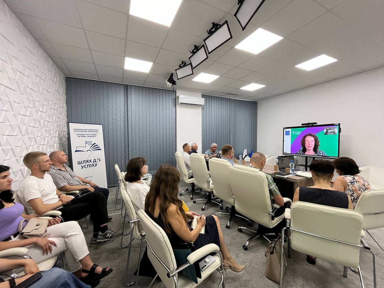 Each partner university (Higher Education Institution Academician Yuriy Bugay International Scientific and Technical University, National Technical University of Ukraine Igor Sikorsky Kyiv Polytechnic Institute, Yaroslav Mudryi National Law University) presented its university-city collaboration center. The University-city collaboration center “UNICITIES” of Chernihiv Polytechnic National University was presented by the Head of the center Zhanna Derii.