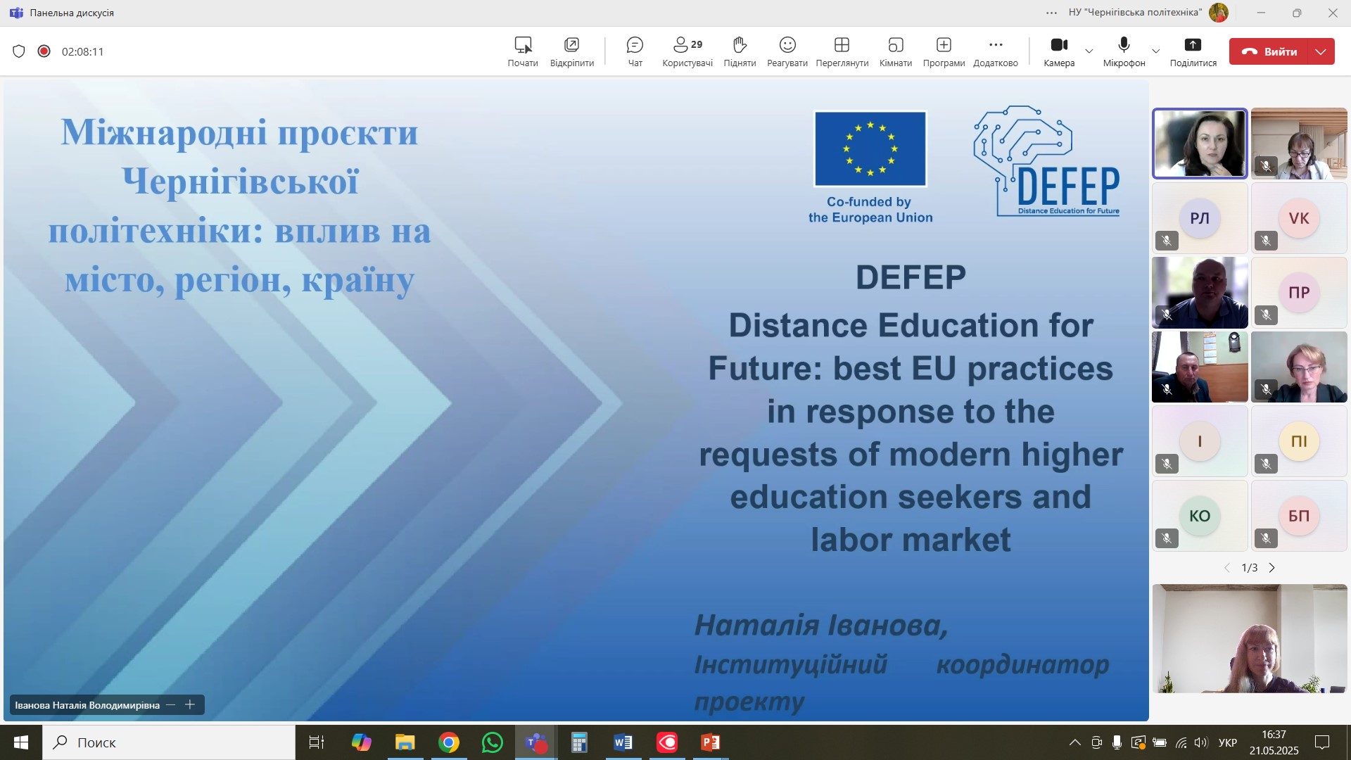 - DEFEP ‘Distance education for the future: EU best practices in response to the needs of students and the labour market’ – Nataliia Ivanova (https://defep.chmnu.edu.ua/)
