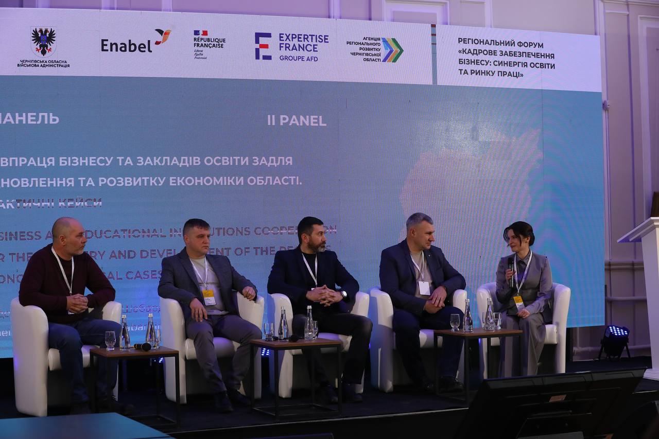 On 26 February, a regional forum “Business Human Resources: Synergy of Education and Labour Market” was held in Chernihiv. The event has become an effective platform for an open dialogue between representatives of government, business, international partners and educational institutions, facilitating the exchange of experience and joint search for solutions to overcome the staff shortage in the areas of recovery and development.
