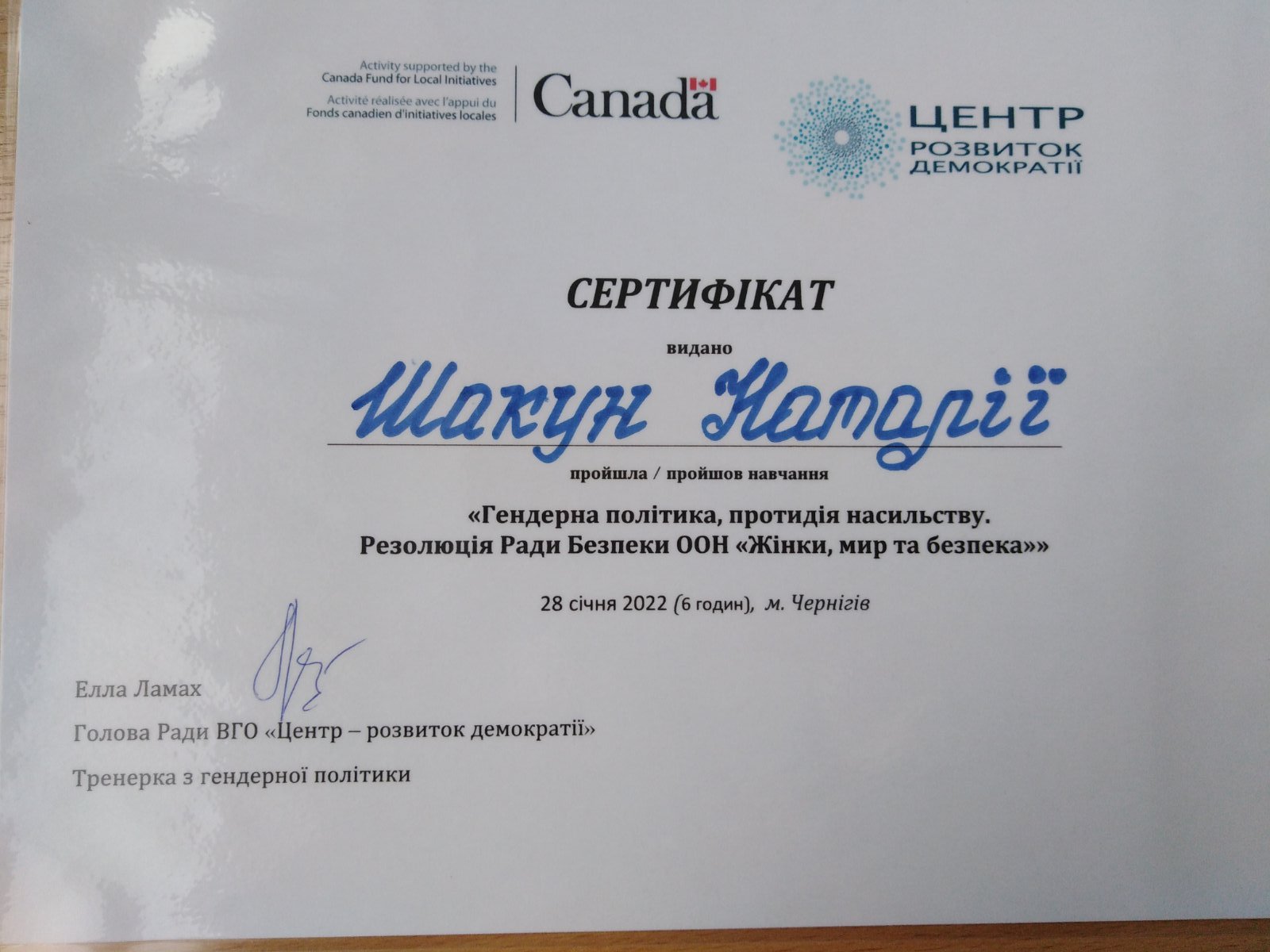 On January 28, 2022, Nataliia Shakun, Head of the Department of Philosophy and Social Sciences, and Alla Nitchenko, Associate Professor of the Department of Philosophy and Social Sciences and lecturers at the National University of Chernihiv Polytechnic, were members of the Department of Philosophy and Social Sciences. UN Security Council Resolution “Women, Peace and Security”.