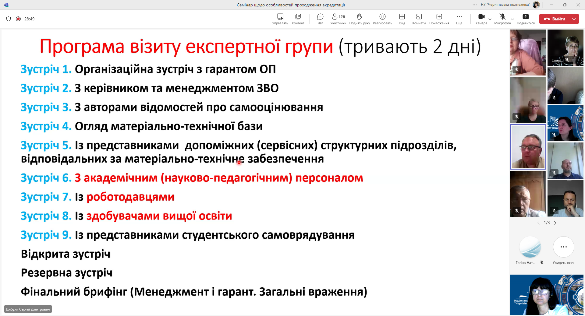 The seminar raised issues related to the procedure for conducting accreditation examination in wartime, participation of academic staff and representatives of structural units in the preparation of the self-assessment report, updating of educational programmes, etc.