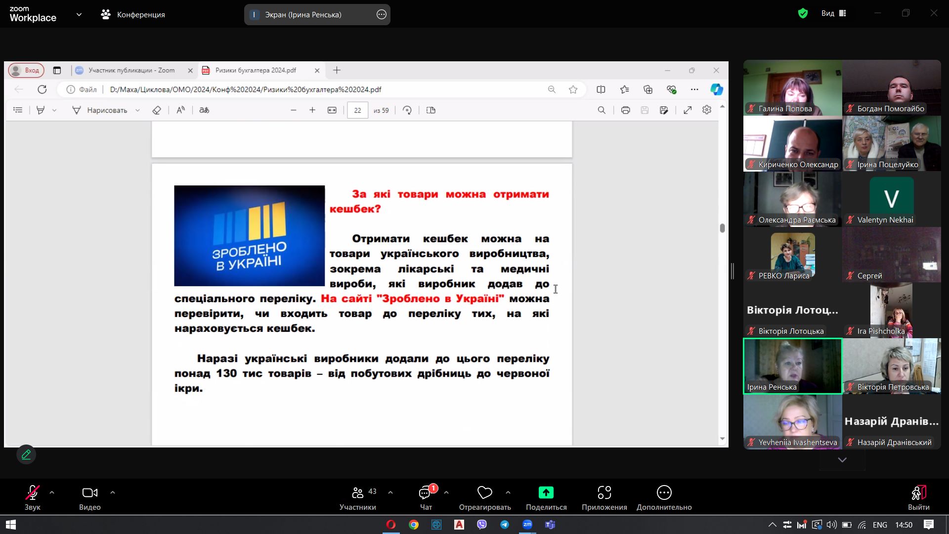 - Iryna RENSKA, Lecturer at the Separated structural unit Chernihiv Professional College of Engineering and Design of Kyiv National University of Technologies and Design, Chernihiv, Ukraine – Risks and challenges for accountants in Ukraine: current tax and accounting innovations;