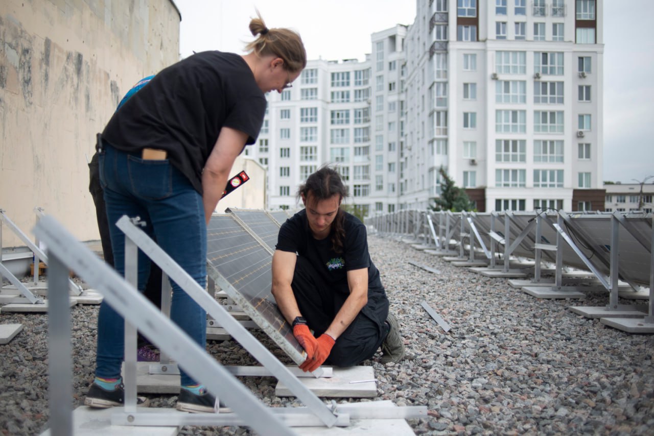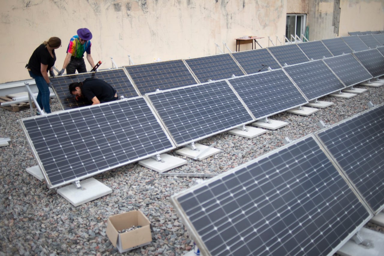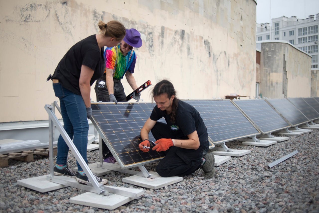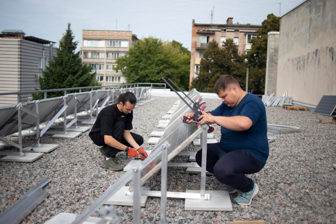 The installation of the equipment began during a two-day practical workshop with the mobile maker space #TOLOCAR. Veterans and city residents learned to work with renewable energy sources together and participated in the preparatory stages. The installation work continued for another two weeks with the support of the volunteer organizations Building Ukraine Together – BUR, Repair Together and students of the Chernihiv Polytechnic National University.