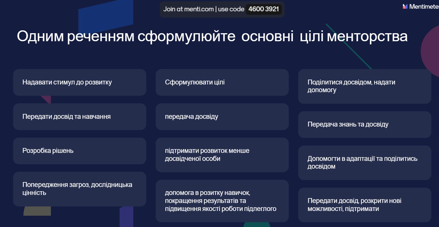 The event was moderated by an experienced IT mentor Yevhen Patlan (Percona). The training participants were greeted by Maksym Zabashtanskyi, the university’s dual education coordinator, who emphasised the importance of mentoring practices in the modern higher education system. Liudmyla Remnova, Institutional Coordinator of the PROMENT project, introduced the PROMENT project methodology and the tasks of developing a mentoring system at the university. Volodymyr Bazylevych and Yevhen Patlan analysed the main results and challenges of the first piloting of mentoring programmes in 2024. Yulia Daineko and Vladyslav Nosovets (Chernihiv IT Cluster) presented successful cases of mentoring in the IT sector. Interactive group work facilitated by psychologist Oleksandra Serdiuk (Charitable Foundation “Rokada”) helped the training participants better understand how to build trust, set goals, maintain motivation, and give constructive feedback to mentee students.