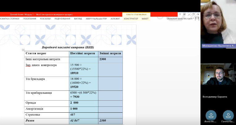 On March 17, 2025, as part of the module “Business Project Management,” a training session on “Financial Business Model” took place. The class was led by Valentyna Moskalenko, PhD in Economics, Associate Professor at the Department of Marketing, PR Technologies, and Logistics, mentor of entrepreneurial initiatives, and business planning consultant.