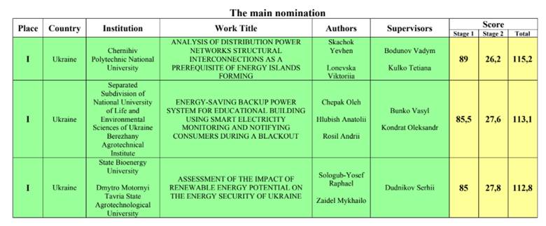 According to the results of the competition, Yevhen Skachok and Viktoria Lonevska became the absolute winners in the field of “Energy and Energy Efficiency” with their paper “Analysis of Distribution Power Networks Structural Interconnections as a Prerequisite of Energy Islands Forming” (the academic supervisors V.M. Bodunov and T.V. Kulko).