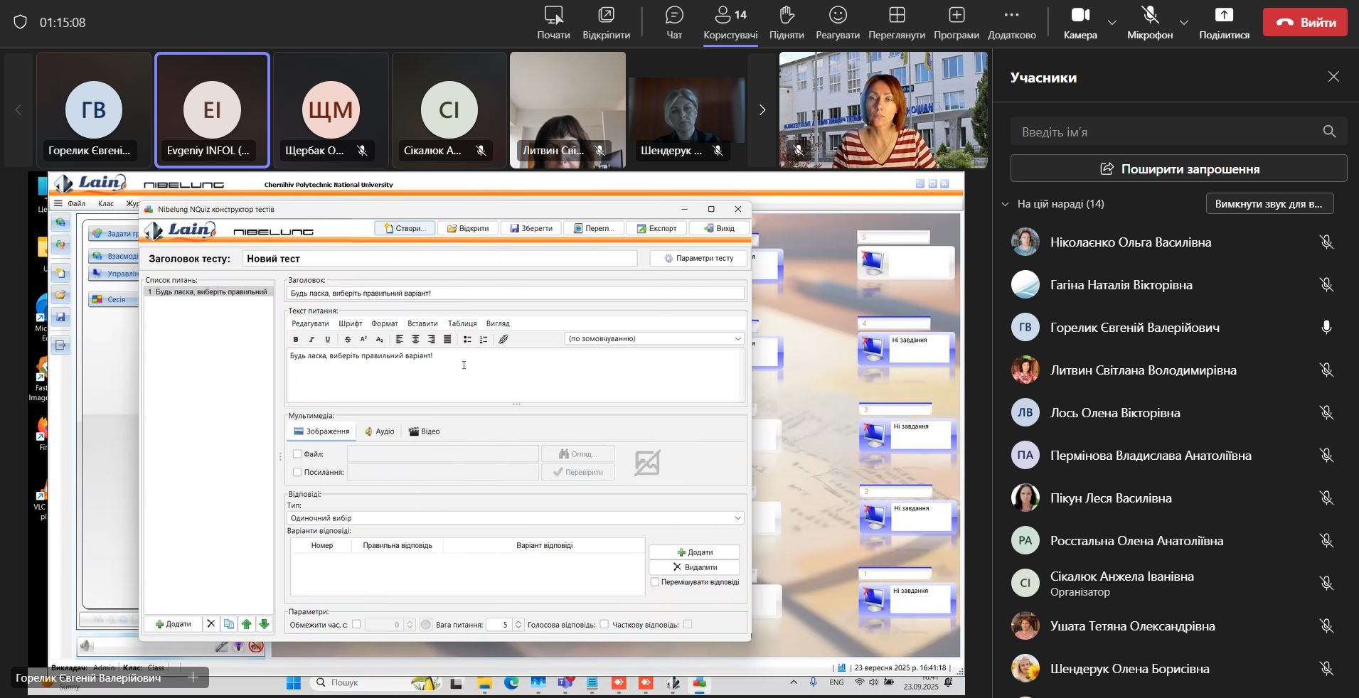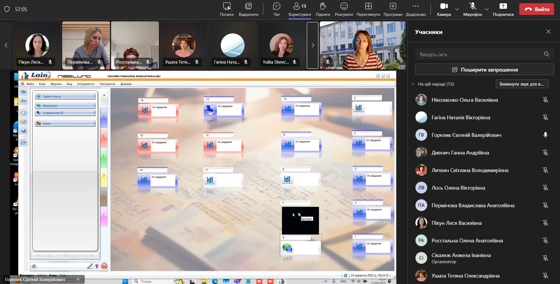 On September 23, the Department of Foreign Philology took part in a webinar dedicated to exploring the functional features of the modern software “NIBELUNG”, within the framework of the Research Laboratory of Integrated Humanitarian Studies. During the event, the lecturers had the opportunity to receive training and gain a clear understanding of the tools and technologies offered by this system. The “NIBELUNG” program was designed to transform an ordinary computer classroom into an interactive multimedia environment. It actually serves as a new-generation language laboratory, giving both teachers and students more flexibility in organizing the learning process.