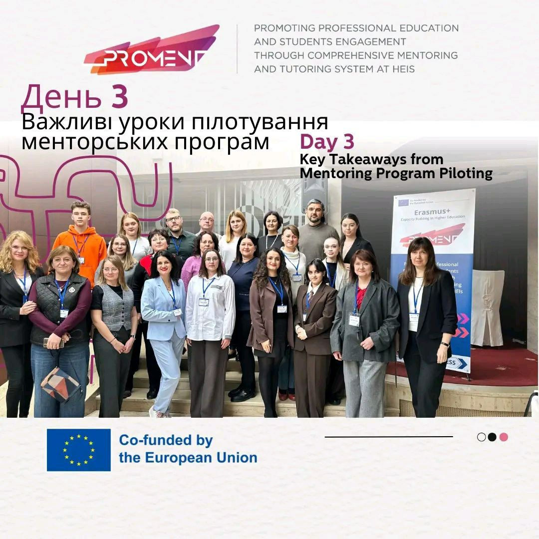 From 17 to 20 February 2025, the “Workshop on Piloting Experience Exchange” was held in Uzhhorod within the framework of the international Erasmus+ project KA2 PROMENT with the participation of partner universities of the project consortium from Ukraine, Georgia, Italy, Austria, Poland, Portugal, business partners and NGOs.