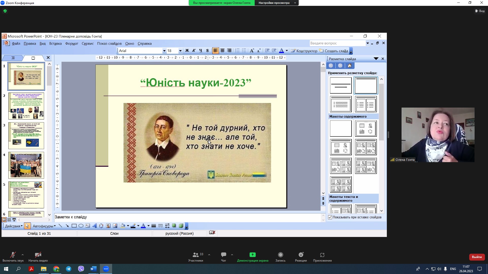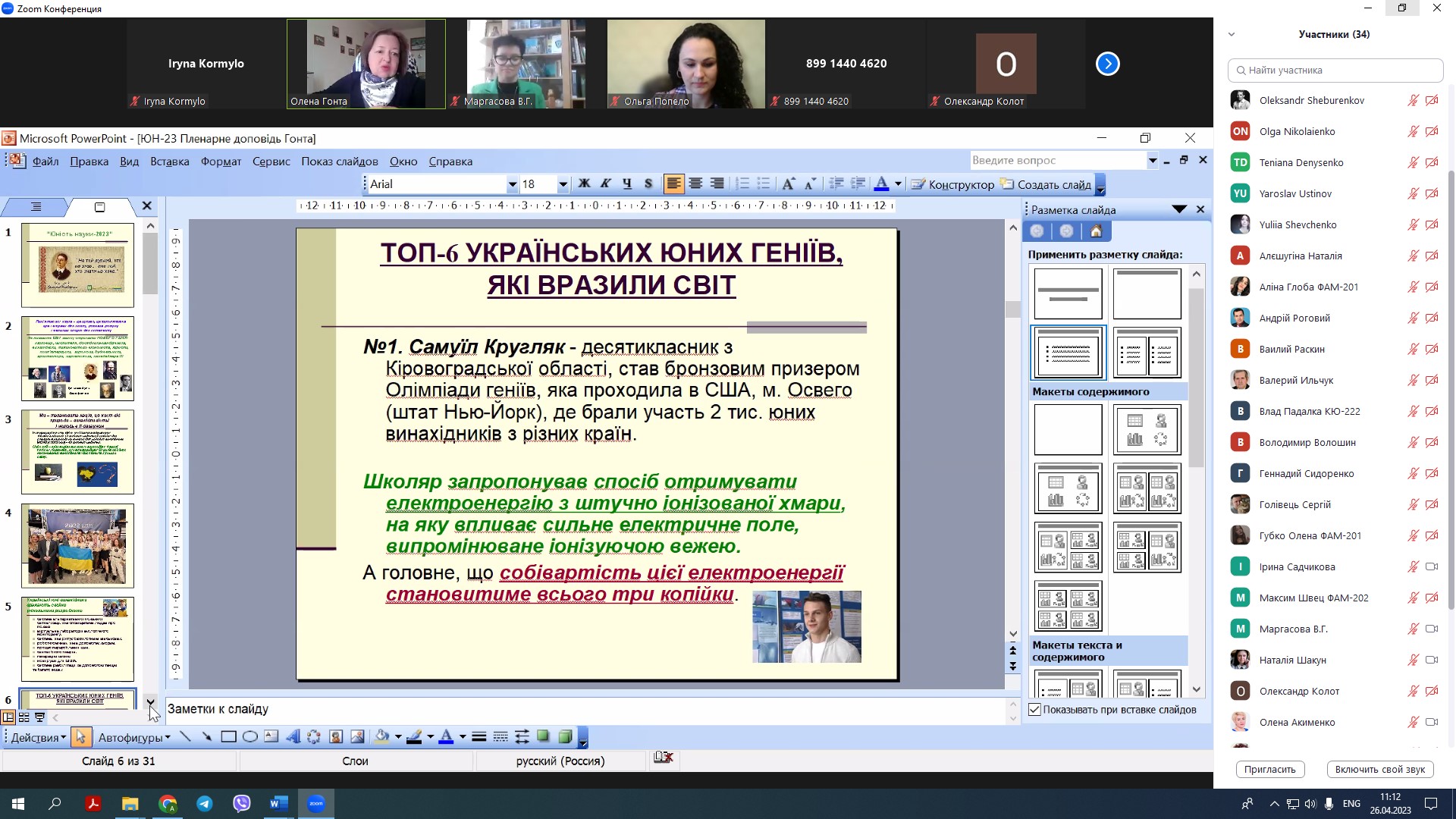 Olena wished the students and graduate students scientific victories, creative achievements and creative ideas. “Science is interesting, it is an exciting game and exercise for the brain, entertainment and a great sport for the intellect,” she said.