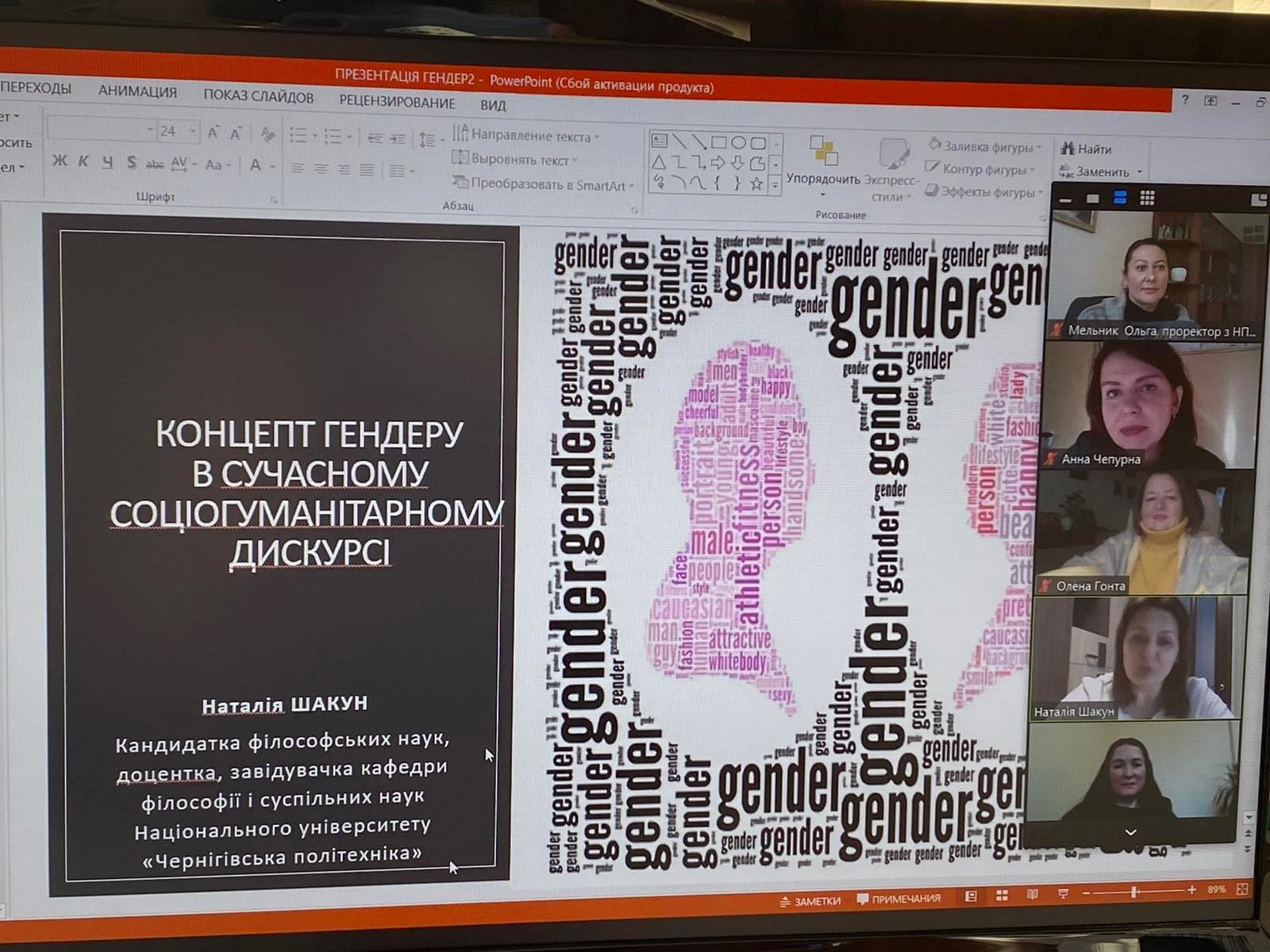 Від НУ «Чернігівська політехніка» свої доробки у галузі ґендерних досліджень представили Шакун Н.В., к. філос. н., доц., завідувачка кафедри філософії і суспільних наук, Чепурна Г.Л., к.п.н., доц. кафедри креативних індустрій та соціальних інновацій, керівниця Центру ґендерної освіти НУ «Чернігівська політехніка», Кухоть Б. В., здобувачка вищої освіти 2 курсу групи СП-201.