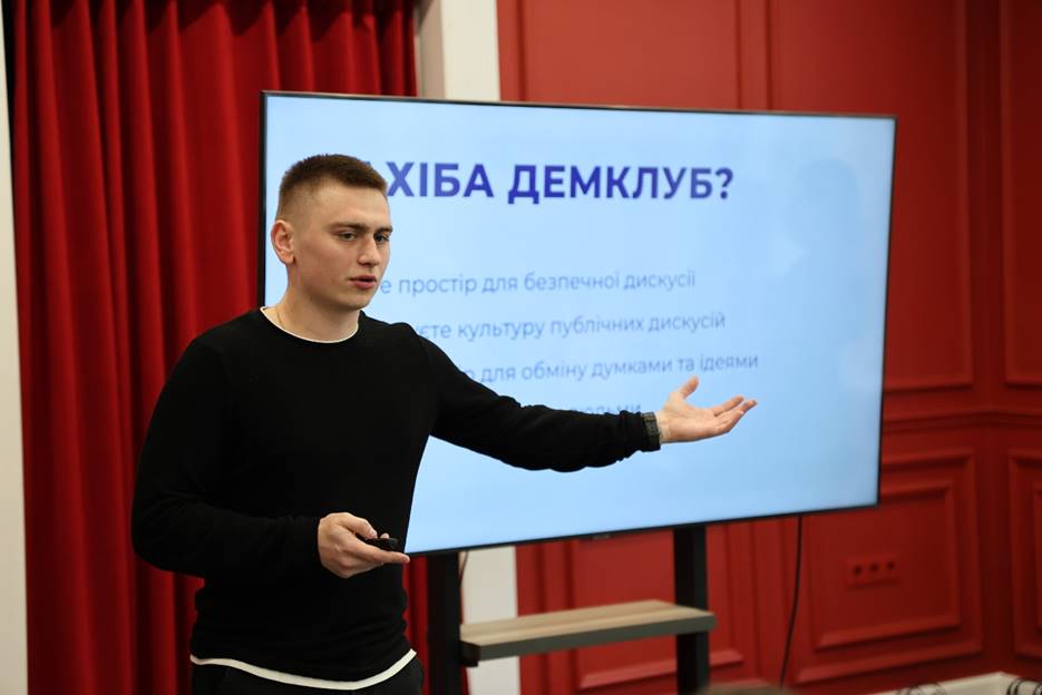 В Чернігові відкривається «ДемКлуб» – щомісячні зустрічі активної та амбітної молоді під час навчального семестру. Під час таких зустрічей молодь обговорює актуальні виклики демократії та прав людини, дискутує, дізнається нове, вільно висловлює думку і головне – творить спільноту активних громадян в своєму місті.