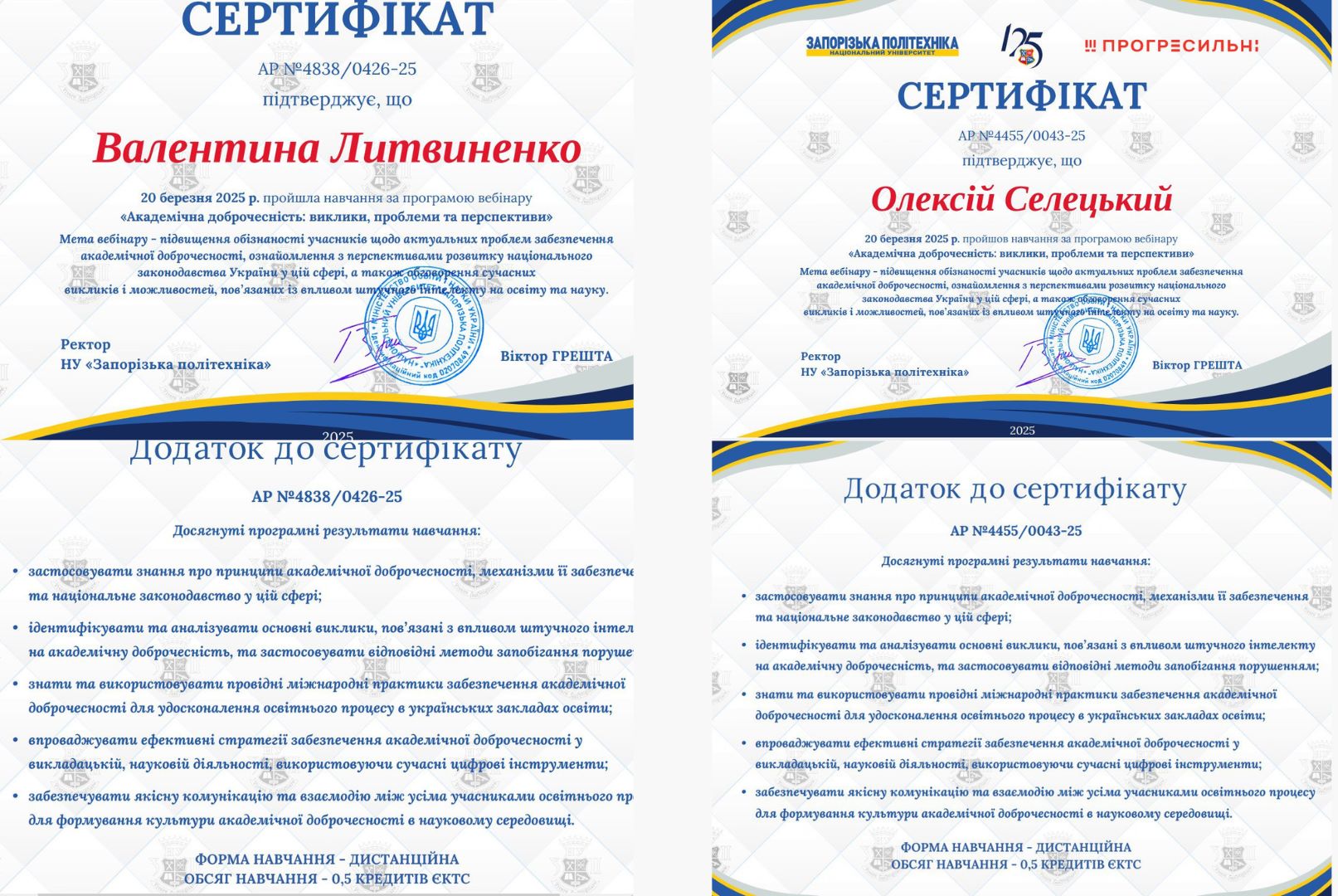 Це стало свідченням їхніх експертних знань у сфері академічної доброчесності, підтвердило здатність успішно застосовувати ці знання в науковій і освітній діяльності та підтвердило високий рівень компетентності.