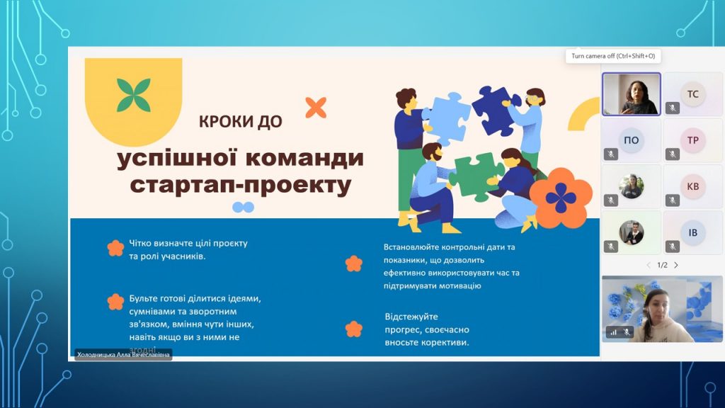 22 квітня 2026 року для учасників стартап-школи відбулася менторська сесія «Алхімія стартапу: поєднання ідеї, команди та результату», яку провела Алла Холодницька, керівниця Центру тьюторства та менторства. Модератором заходу виступила Катерина Гнедіна, координатор розвитку стартапів, інновацій та проєктного навчання НУ «Чернігівська політехніка».