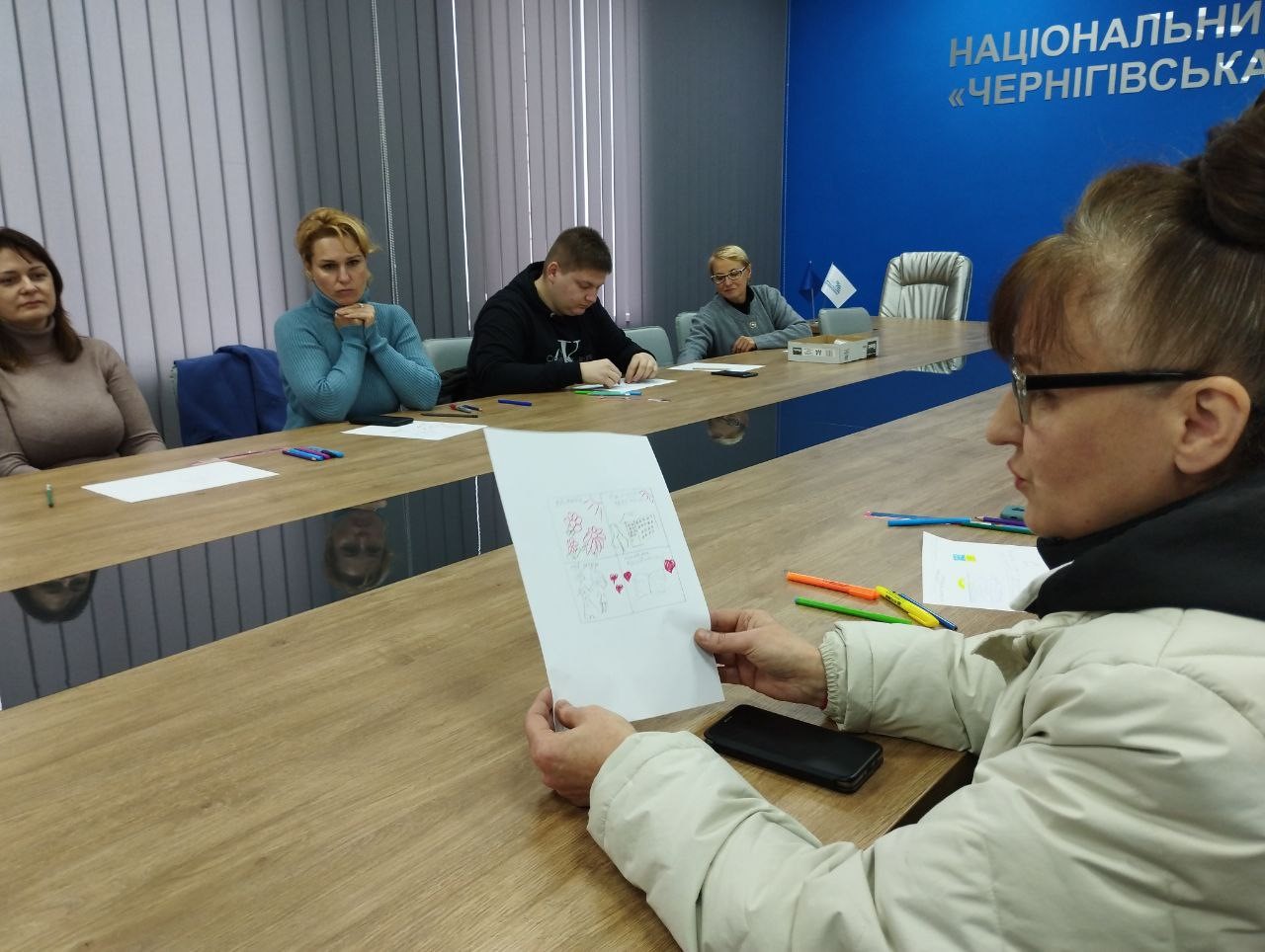 У п’ятницю 28 жовтня 2022 р. в рамках проєкту «Мир у цифровий час», що реалізується ГО «Центр гендерної освіти» спільно з ГО «Фундація прав людини» в НУ «Чернігівська політехніка», відбулось блог-кафе «НОВА РЕАЛЬНІСТЬ: ЯК ЖИТИ В УМОВАХ ВІЙНИ. АДАПТАЦІЯ, ЕКОЛОГІЧНІ СПОСОБИ ПРОЖИВАННЯ ЕМОЦІЙ», присвячене темі арттерапії як ефективному засобу підтримки і зміцнення психічного здоров’я нації в умовах війни в Україні.