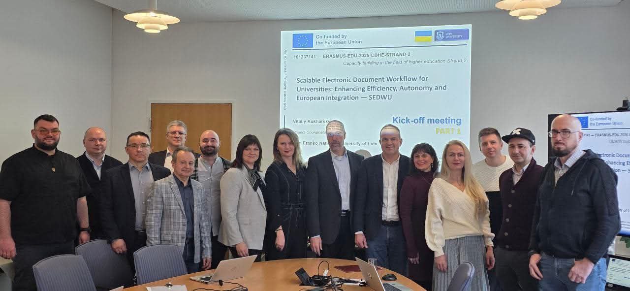 Під час першого дня зустрічі учасники ознайомилися з концепцією, цілями та структурою проєкту SEDWU, а також презентували досвід своїх університетів у сфері електронного документообігу та цифрової трансформації управлінських процесів.