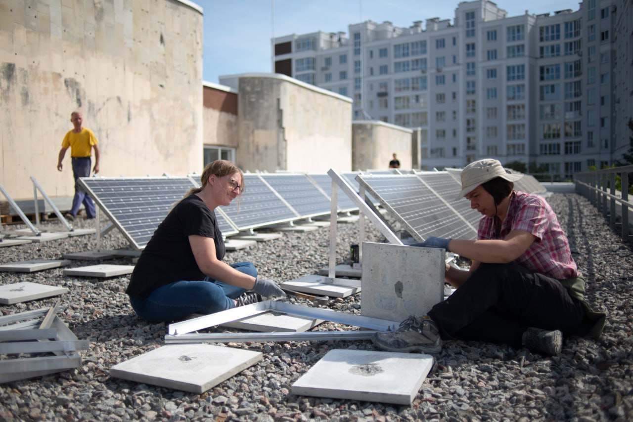 Установку обладнання розпочали під час дводенного практичного воркшопу з мобільним мейкерським простором #TOLOCAR. Ветерани та мешканці міста разом навчалися працювати з відновлюваними джерелами енергії та брали участь у підготовчих етапах. Ще два тижні тривала робота з монтажу за підтримки волонтерських організацій Будуємо Україну Разом – БУР, Repair Together та студентів політехніки.