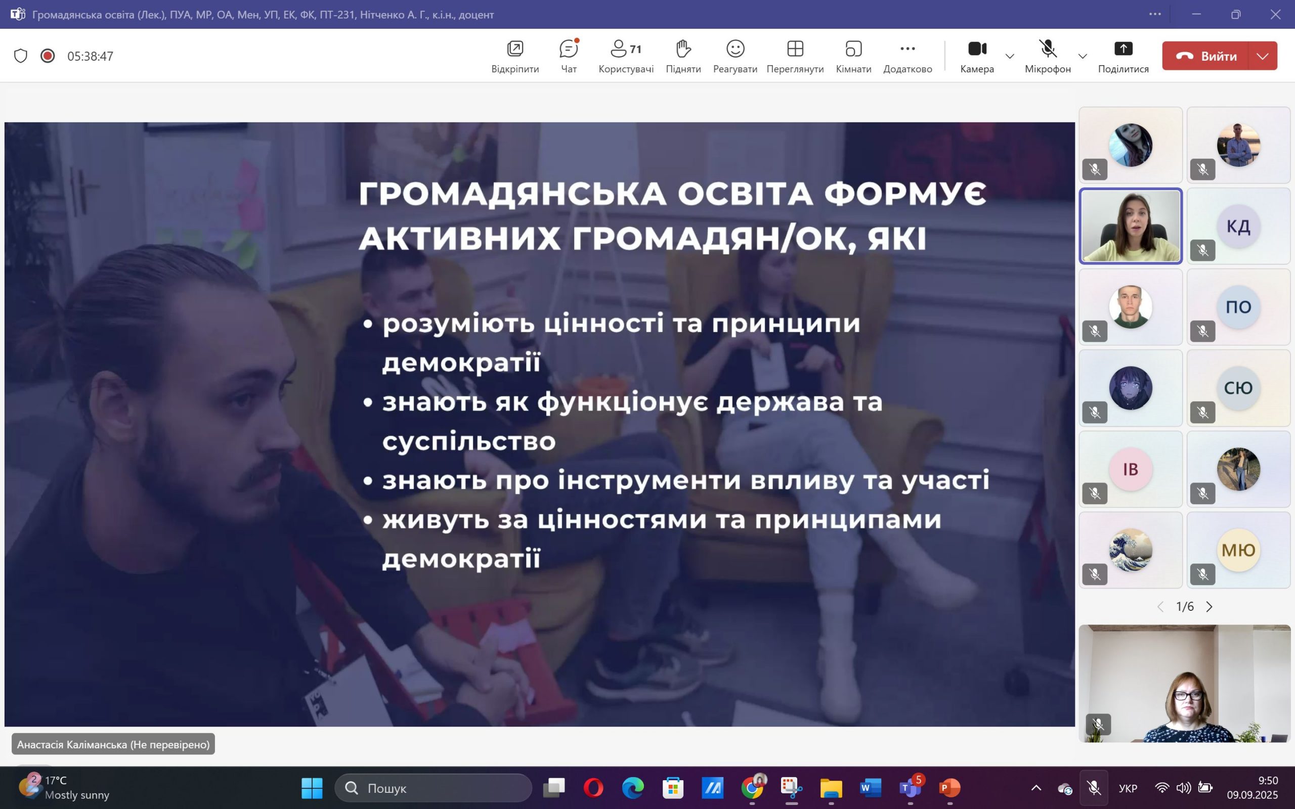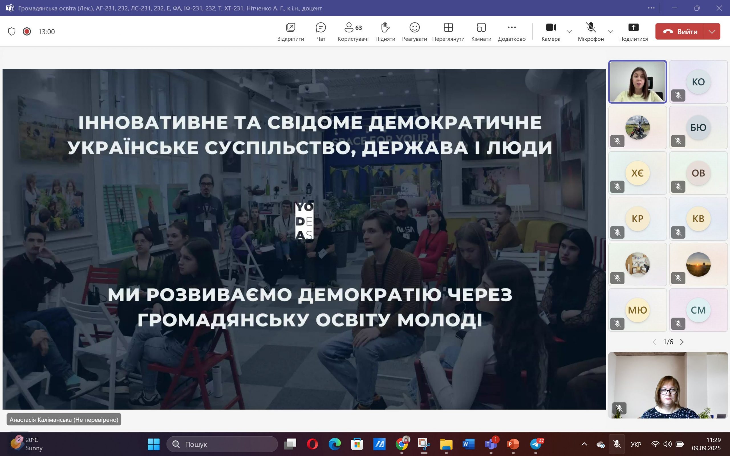 Менеджерка спільноти та випускниця курсу Анастасія Каліманська розповіла здобувачам вищої освіти про нові можливості, які відкриваються під час і після завершення навчання на курсі «Громадянська освіта».