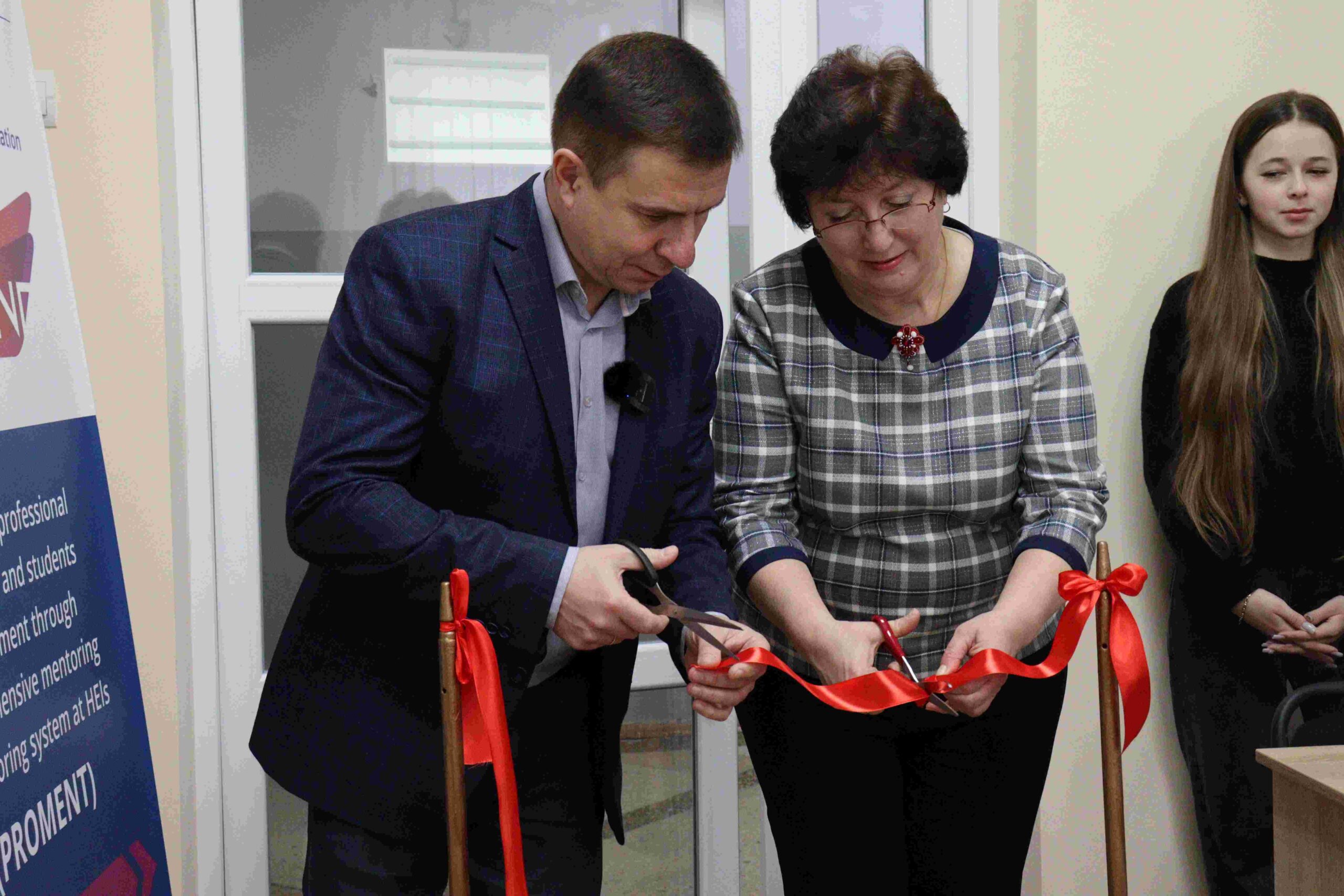Демо-день розпочався з урочистої церемонії відкриття інтерактивного простору Центру тьюторства та менторства, який оснащений сучасним обладнанням за кошти проєкту і має всі необхідні умови для розвитку студентських ініціатив та підтримки молодих лідерів. У вступному слові ректор НУ «Чернігівська політехніка» Олег Новомлинець підкреслив важливість діяльності такого Центру, а координаторка проєкту PROMENT Людмила Ремньова і керівниця Центру Алла Холодницька поділилися досягненнями за 2024 рік та подальшими перспективами розвитку тьюторських і менторських програм в університеті.