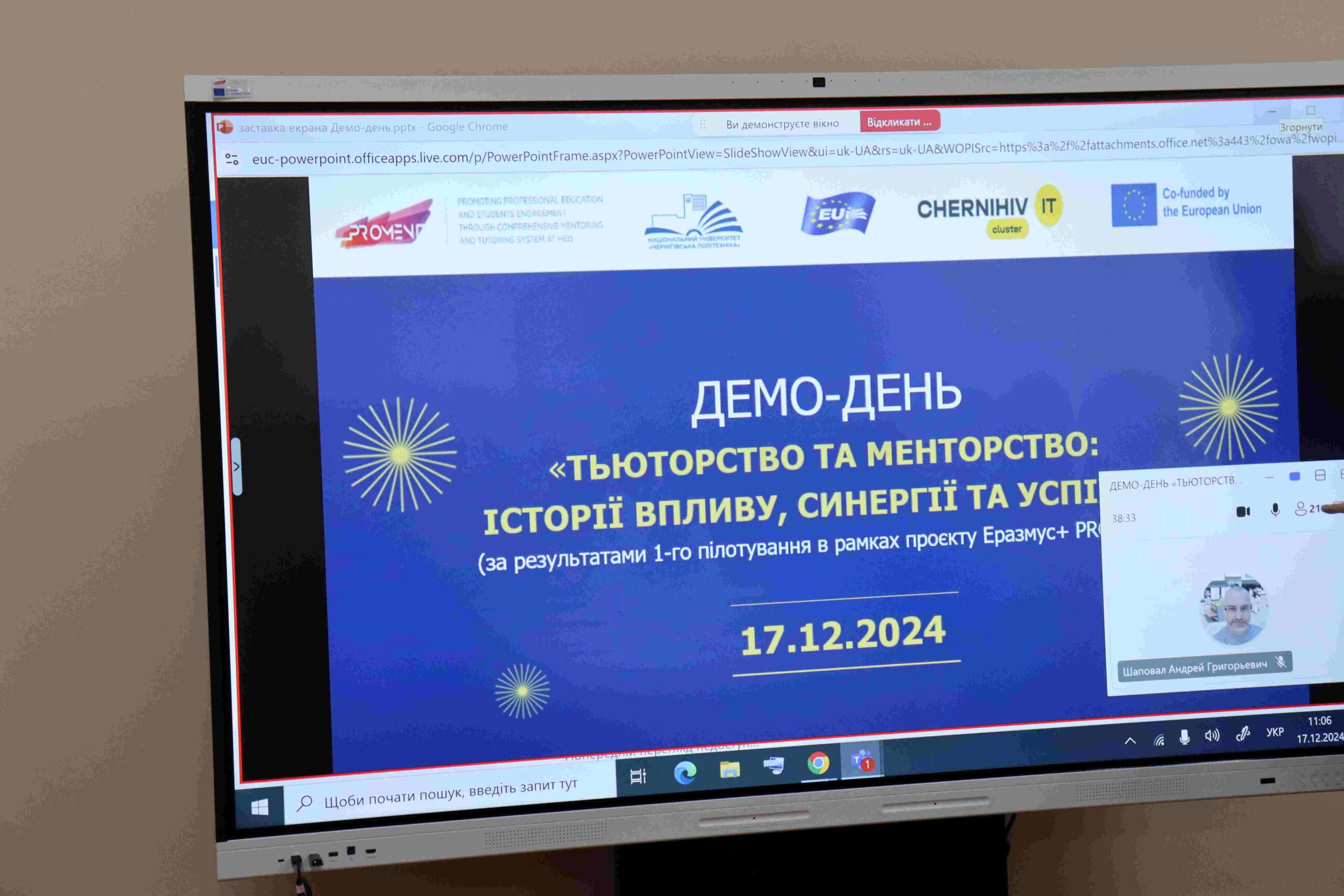 17 грудня 2024 року в Національному університеті «Чернігівська політехніка» відбувся Демо-день «Тьюторство та менторство: історії впливу, синергії та успіху» за участю Чернігівського ІТ-кластера та університетського Інформаційного центру ЄС.