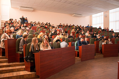 З вітальним словом до присутніх звернувся ректор ЧНТУ, д.е.н., проф. Шкарлет Сергій Миколайович, який наголосив на необхідності молоді використовувати існуючі можливості, стажуватися за кордоном та повертатися до рідної України задля її розбудови на основі європейських цінностей.