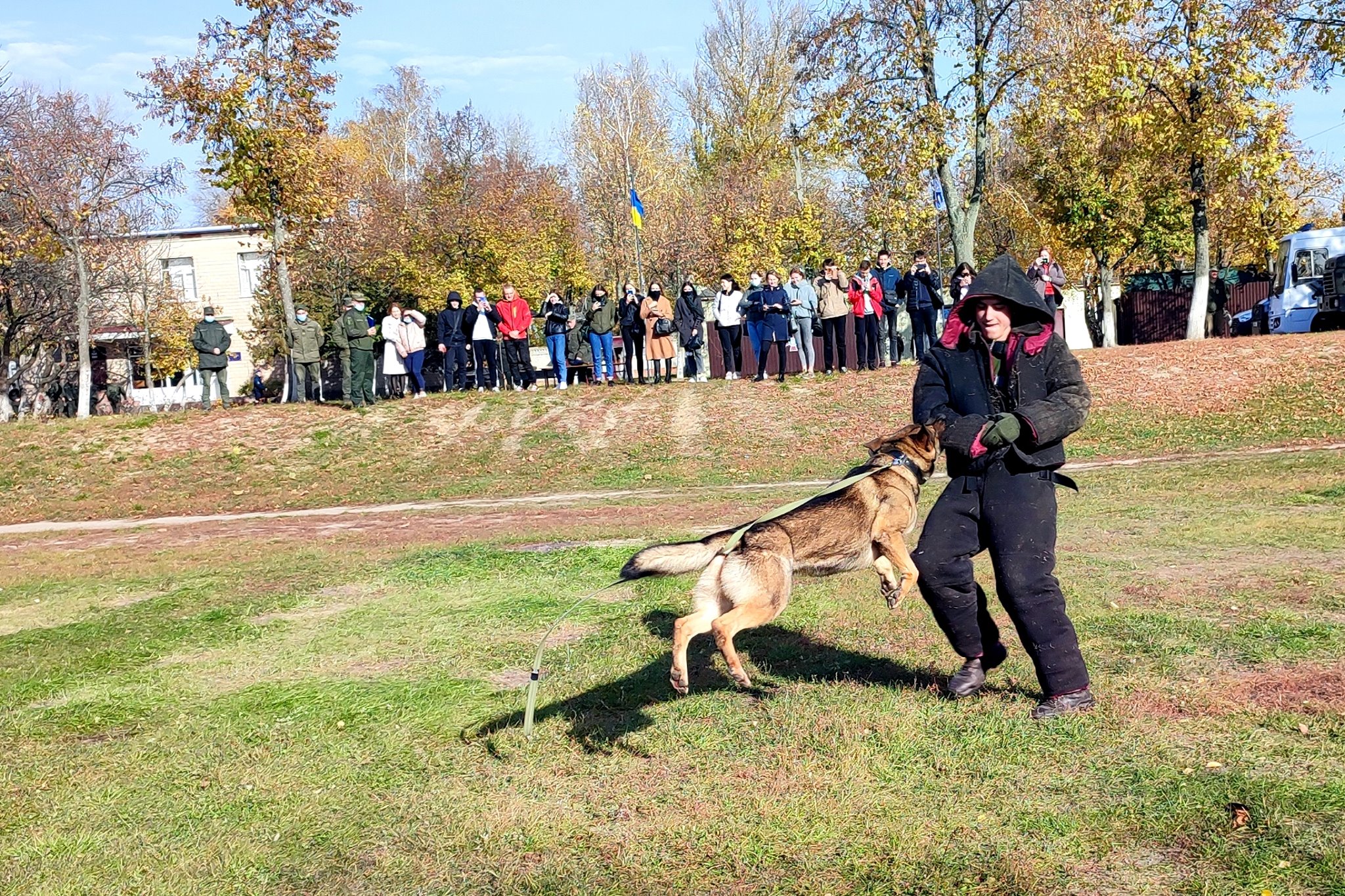 Також студенти могли ознайомитись з військовою технікою, яка залучається до виконання службових завдань та подивитись виступ кінологічної служби, де службова собака Джері-Лі продемонструвала свою спритність та вміння.