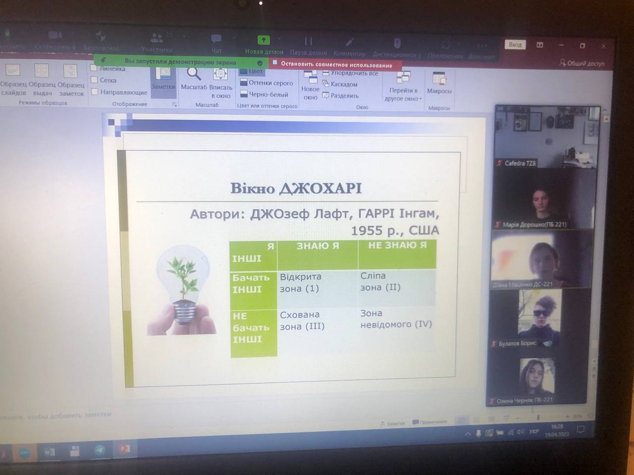Чепурна Г.Л. провела онлайн-тренінг навичок ефективної самопрезентації. Учасники тренінгу ознайомились з найсучаснішими психологічними техніками розвитку самопрезентаційної компетентності, мали можливість опанувати навички створення враження про себе, навчитись вдало та переконливо себе презентувати, долати переживання та впевнено рухатись до своєї мети, побудувати саме свою власну стратегію самопрезентації, яка стане запорукою професійної самореалізації та успішного життєздійснення.