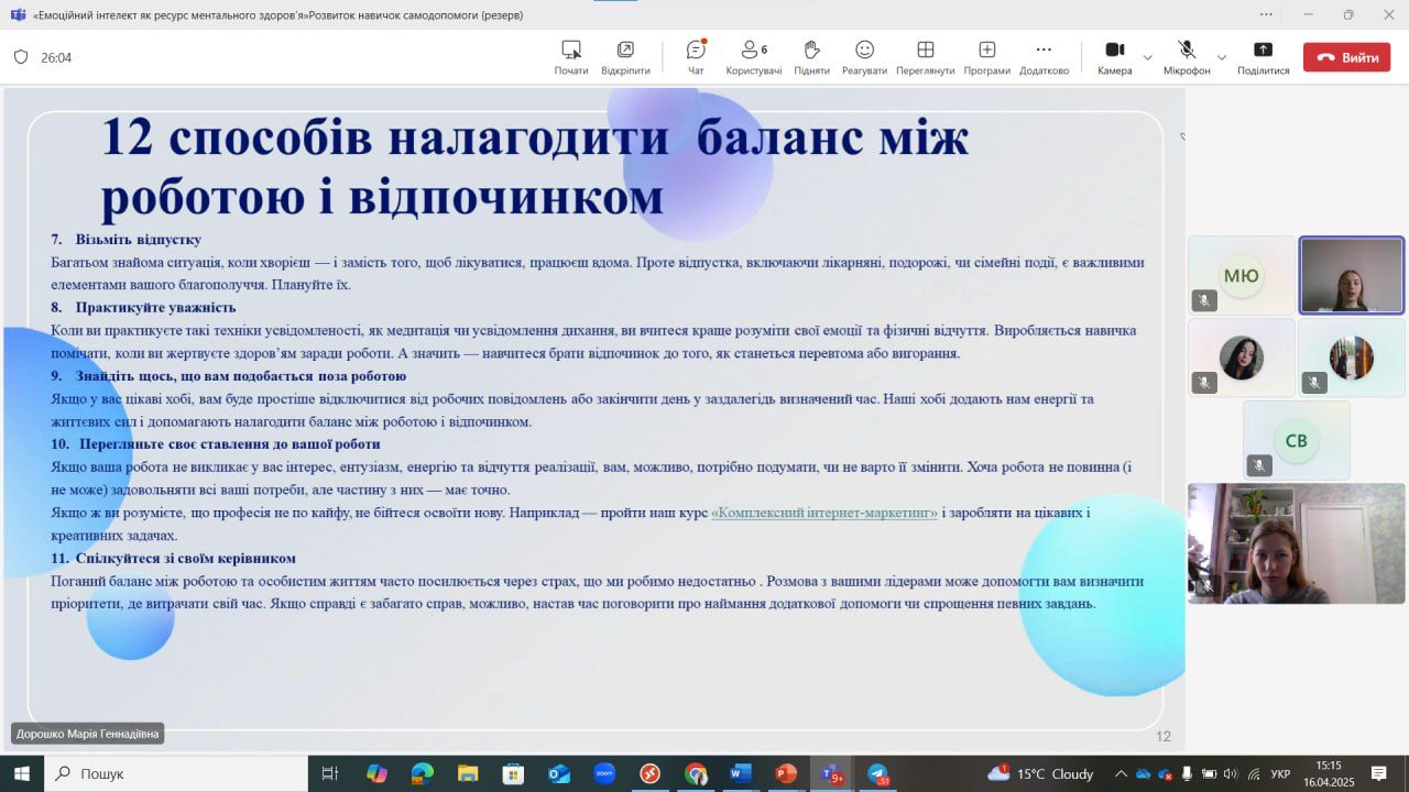 Продовжується реалізація тренінгової програми розвитку навичок самодопомоги “Емоційний інтелект як ресурс ментального здоров’я”, яку впроваджує Центр ментального здоров’я Чернігівської політехніки.
